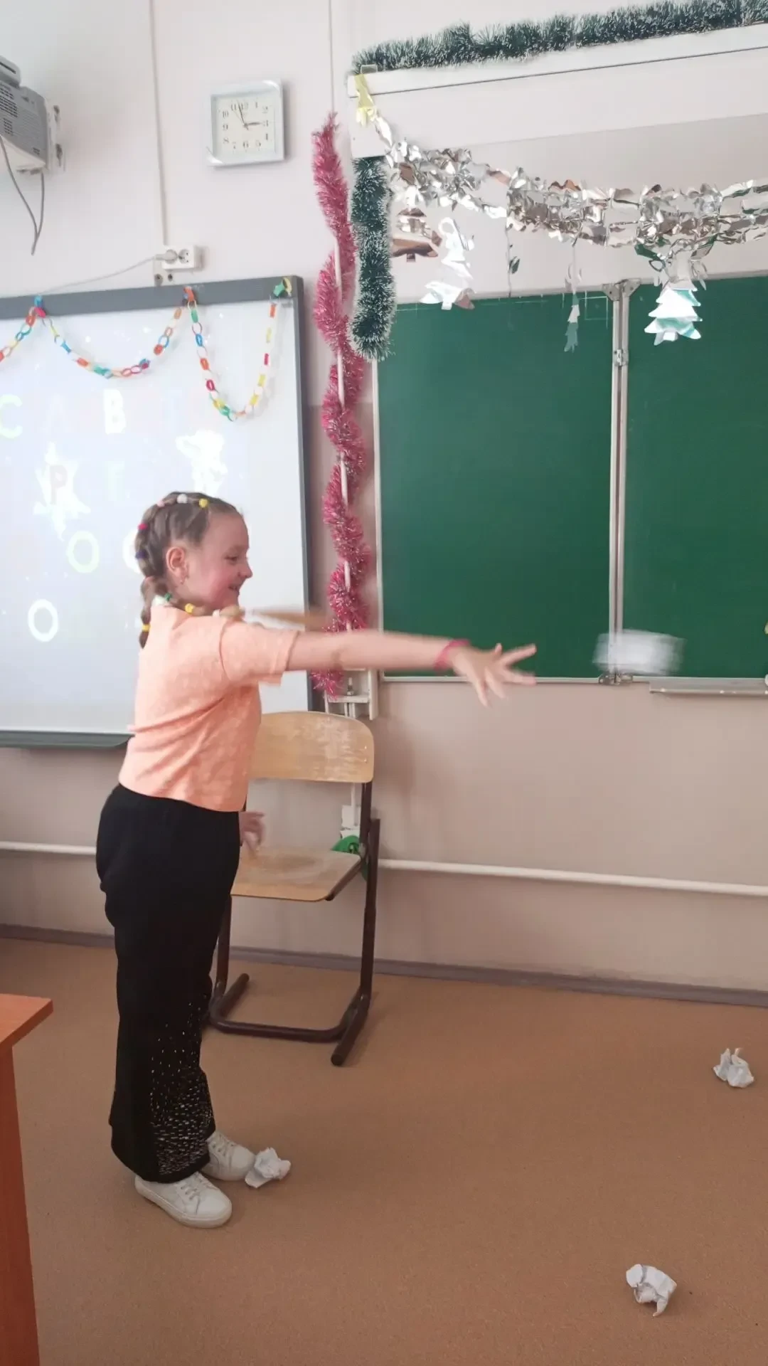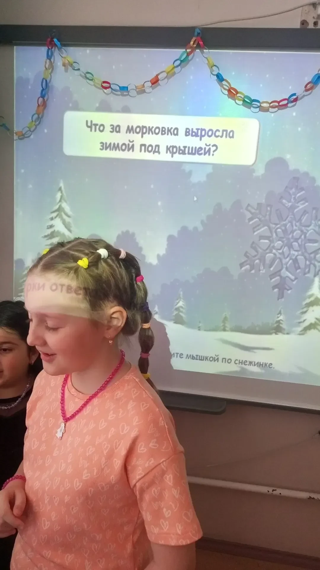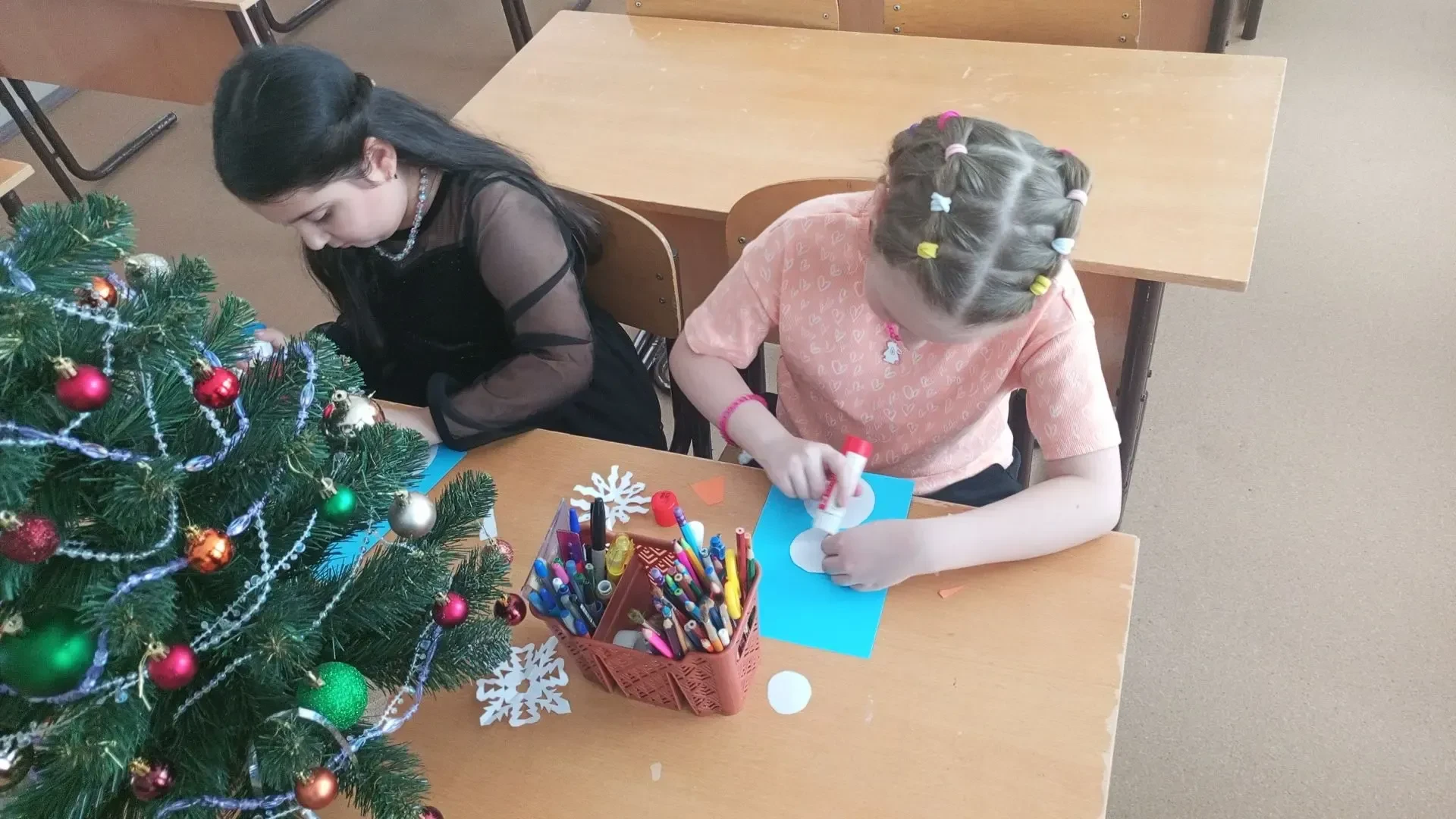 Ребята снимали снежинки с Новогодней ёлки и выполняли задания: