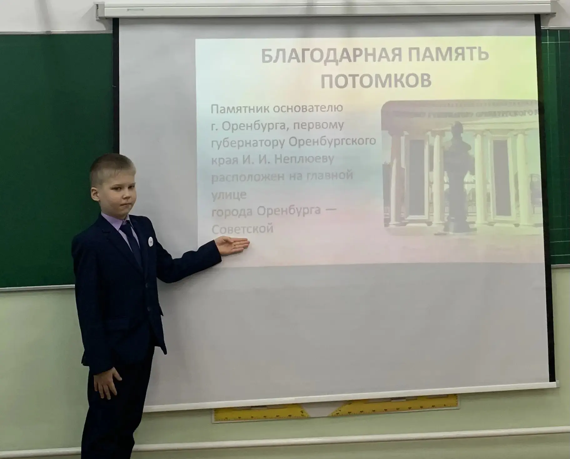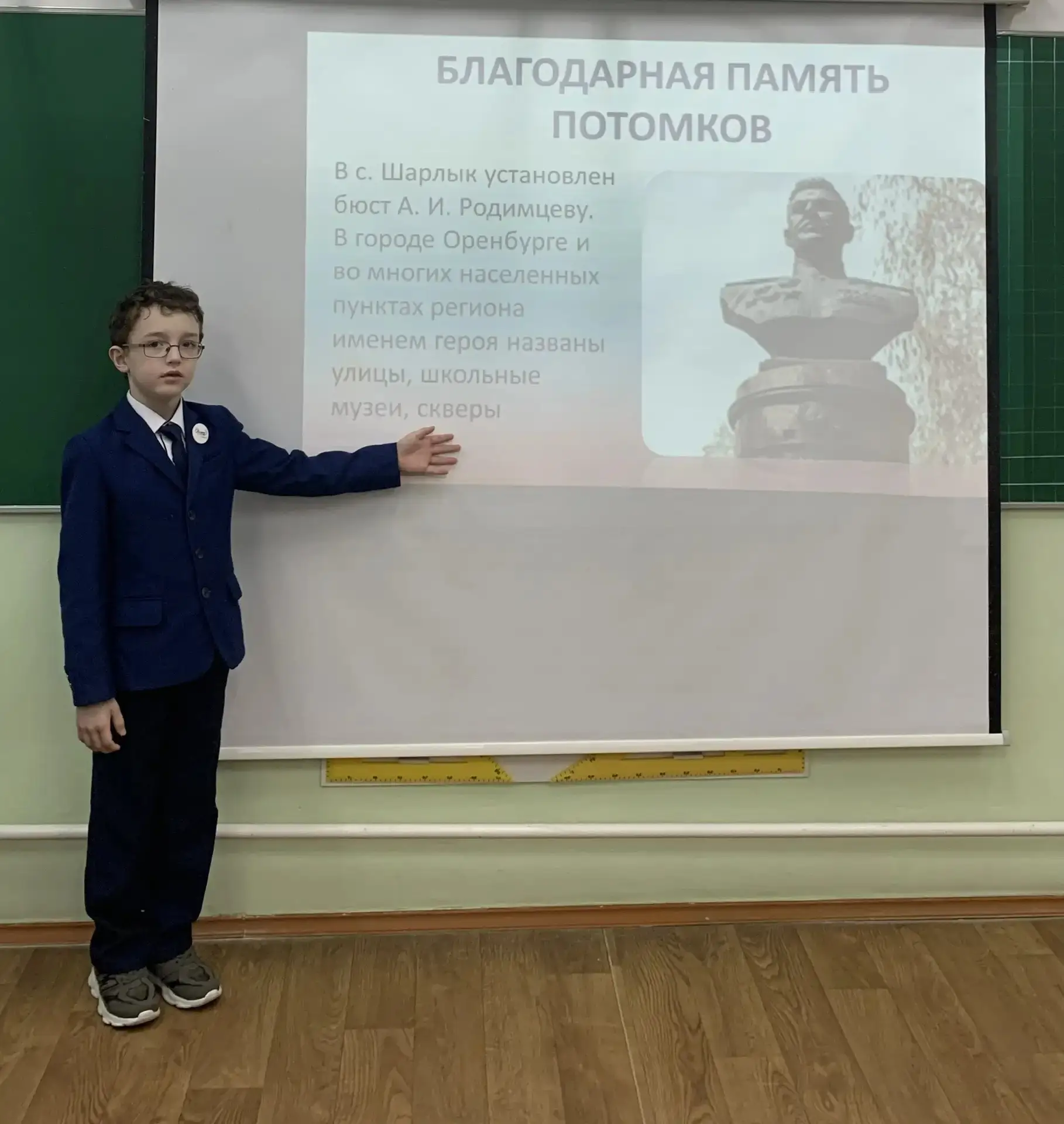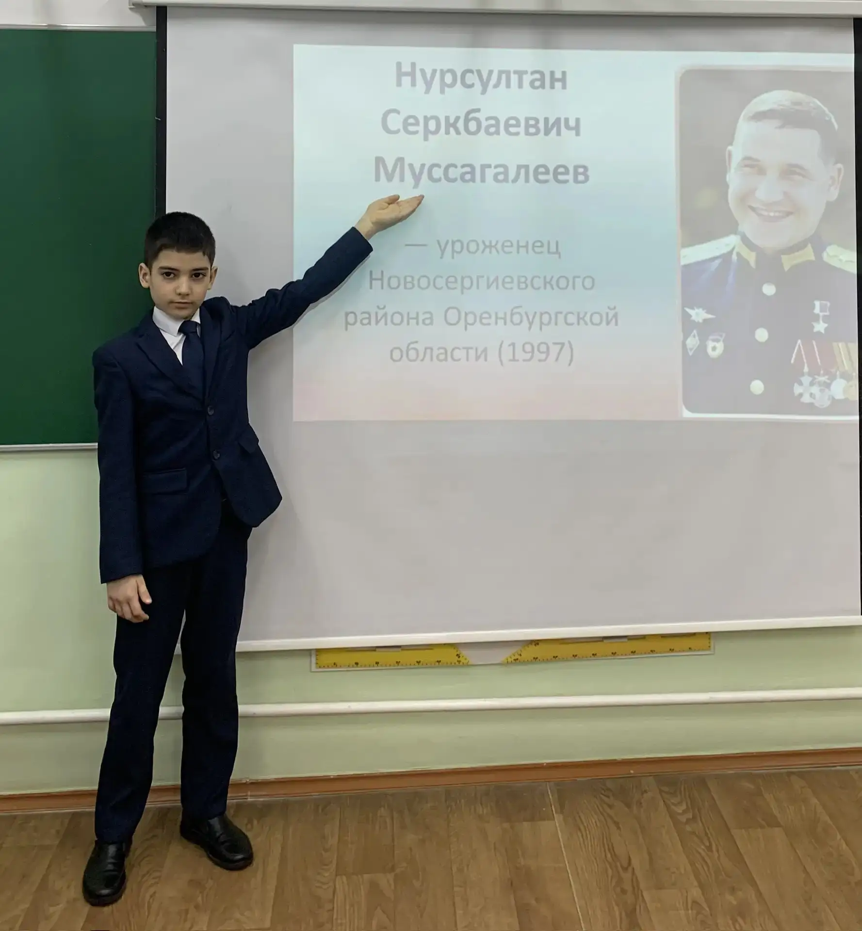 Ребята узнали о первом губернаторе и основателе г.Оренбурга Иване Ивановиче Неплюеве. Оренбуржье получило мощное развитие в годы его правления. Иван Иванович - пример гордости и подражания. С большим интересом ребята слушали рассказ об Александре Ильиче Родимцеве. Это талантливый полководец, уроженец с. Шарлык. Оренбуржье гордится своим земляком! 🪖 Говорили и о герое нашего времени, об участнике специальной военной операции Муссагалееве Нурсултане Серкбаевече. За мужество и героизм, проявленные при исполнении воинского долга, гвардии старшему лейтенанту Муссагалееву Н.С. присвоено звание Героя Российской Федерации с вручением знака особого отличия - медали "Золотая звезда ".