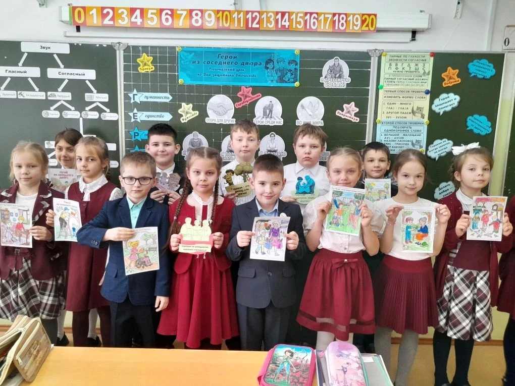 Сегодня во 2 «Б» классе МБОУ Гимназия 1 прошло занятие «Разговоры о важном» на тему «Герой из соседнего двора».