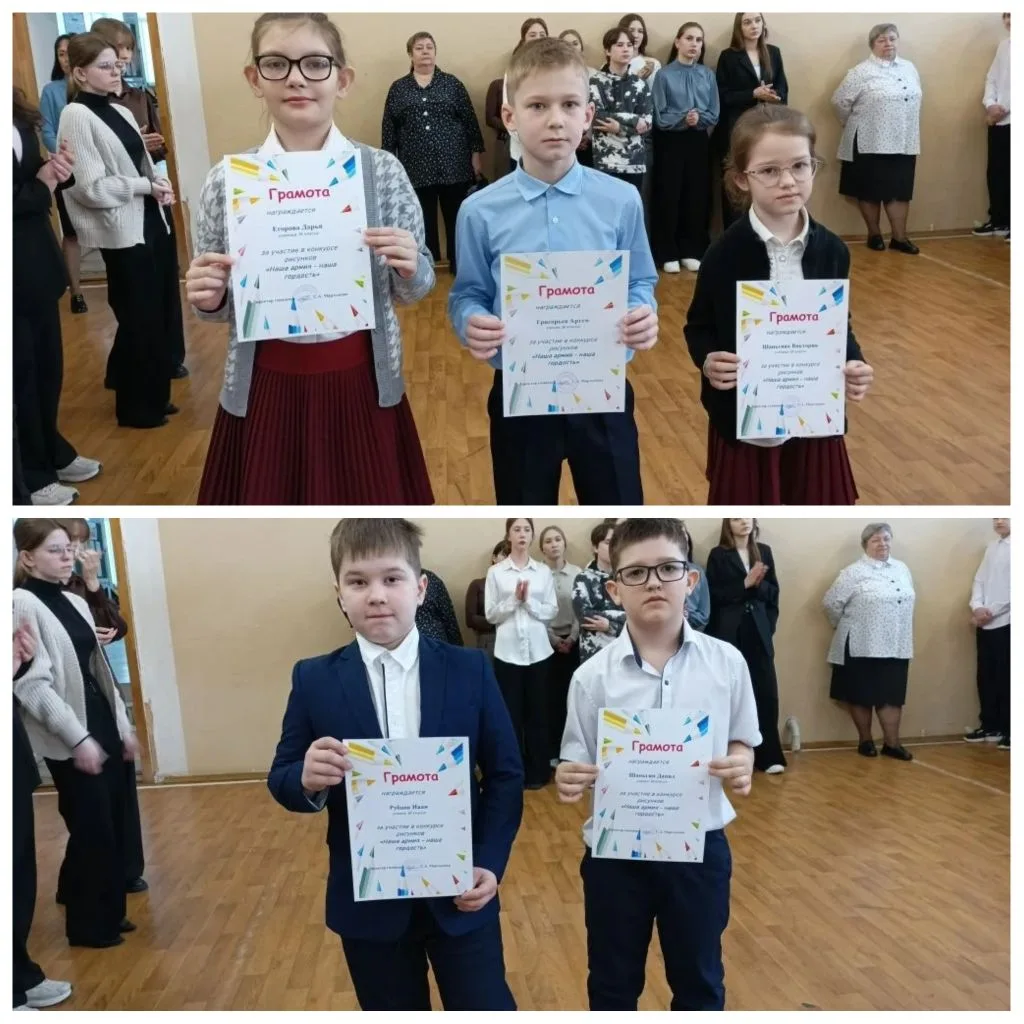 ✅На линейке были подведены итоги минувших дней, и особую гордость вызвали успехи наших учеников. Грамотами были отмечены ребята, проявившие талант и усердие в конкурсе рисунков "Наша армия – наша гордость", а также те, кто внес вклад в создание стенгазеты к 23 февраля, продемонстрировав уважение к истории и воинским традициям.