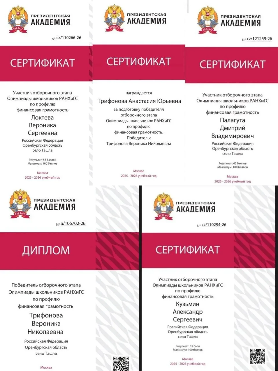 📌В декабре 2025 года подвели итоги отборочного этапа всероссийской олимпиады по финансовой грамотности, организованной Президентской академией РАНХиГС.📊