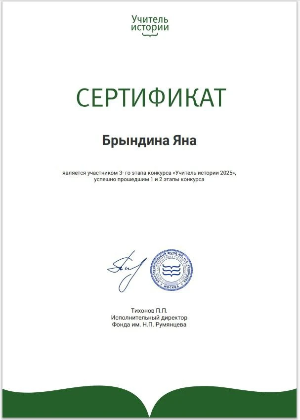 Всероссийская премия «Учитель истории» — это конкурс, проводимый Благотворительным фондом им. Н. П. Румянцева, направленный на поддержку талантливых педагогов и развитие образовательной среды в России. fondrumyantseva.ru/