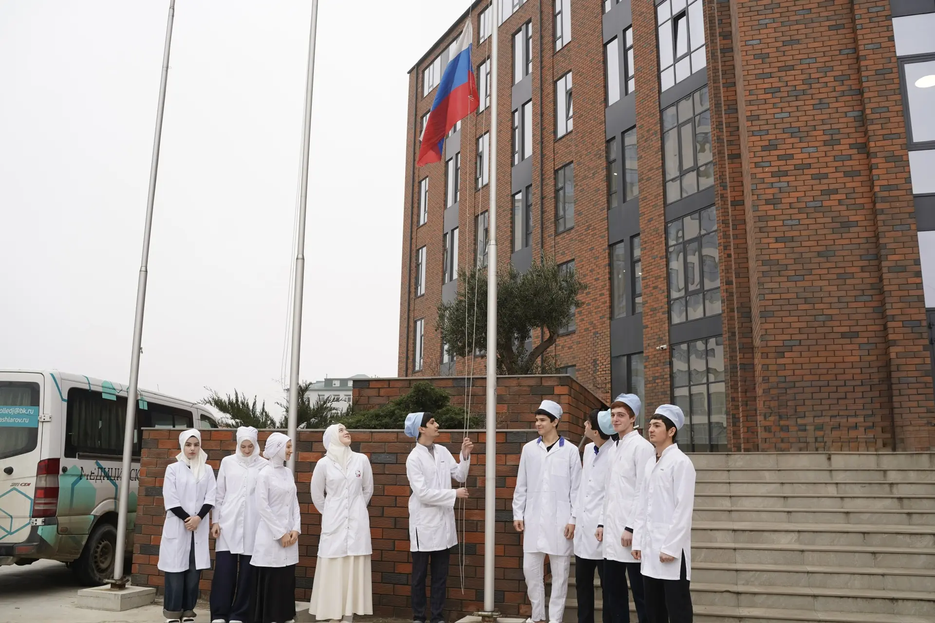 В Медицинском колледже имени Башларова первый учебный день в новом году начался с торжественного поднятия флага