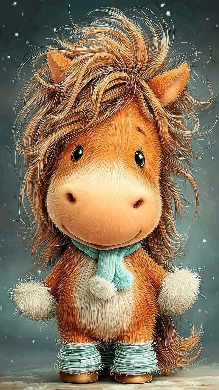 🎨 А эта милая, пушистая, улыбающаяся лошадка — идеальный талисман года! С её теплым шарфом и зимним настроением она напоминает: даже в стремительном беге важно оставаться мягким, добротным и уютным внутри.