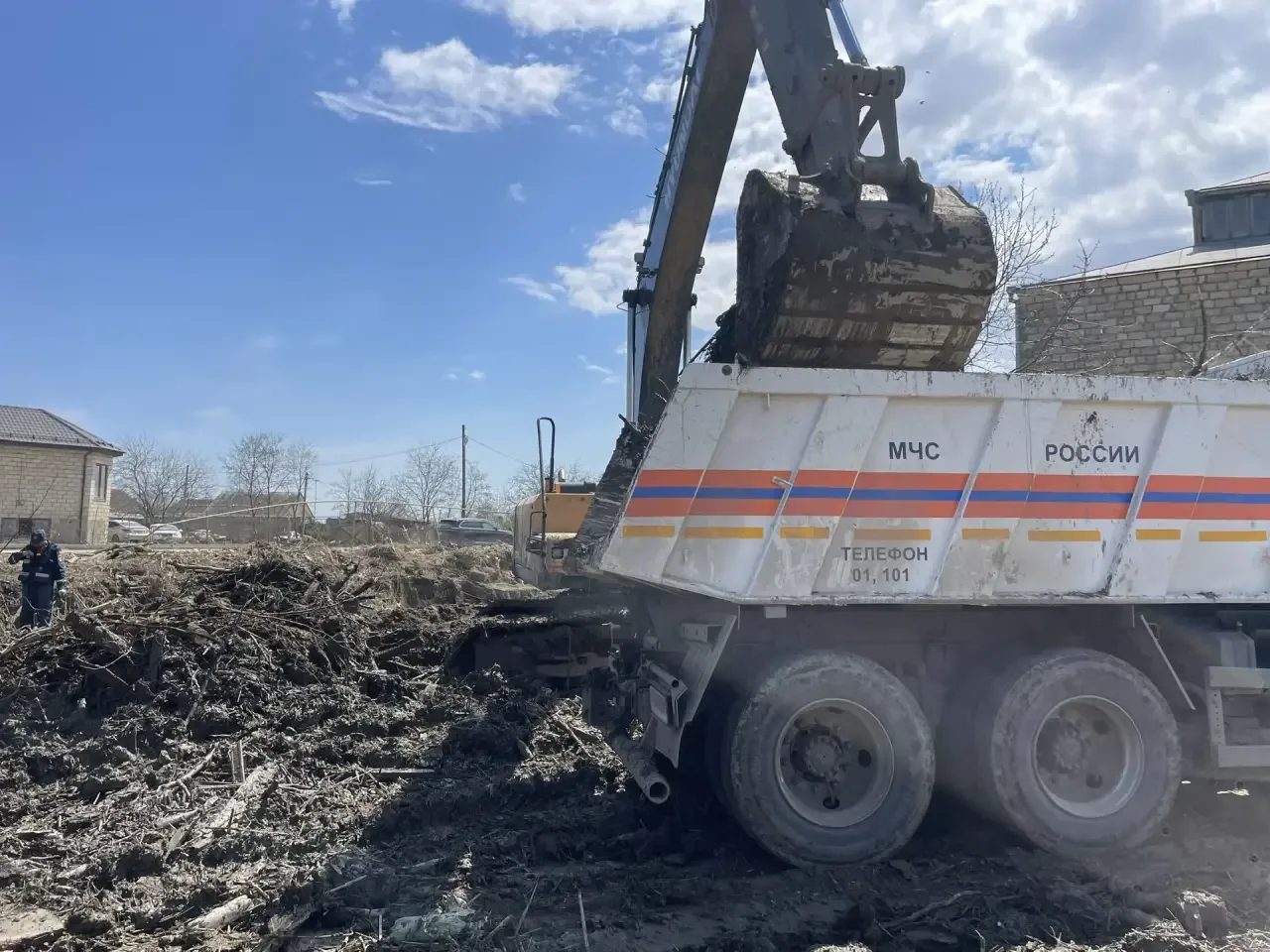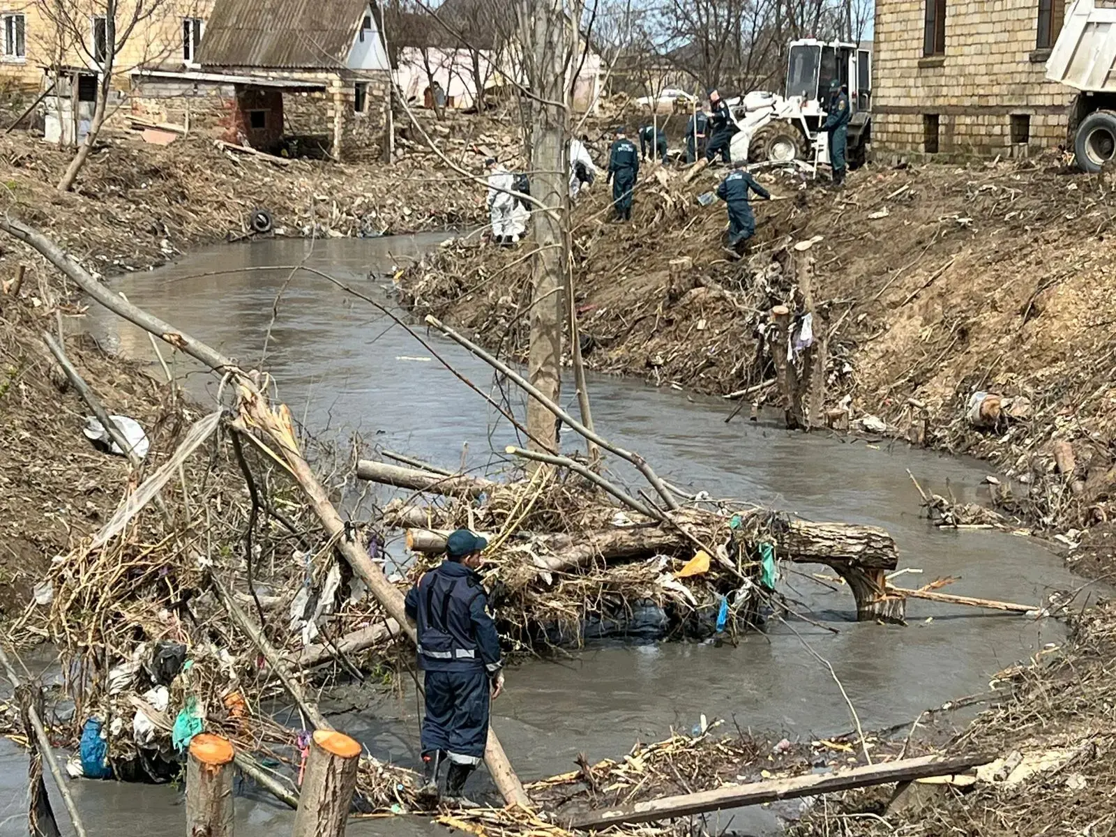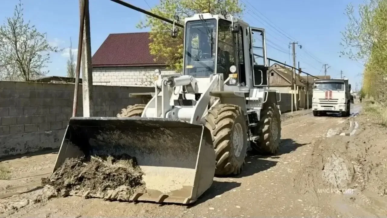 🤝 Спасатели Донского спасательного центра и МЧС республики проводят очистку территорий от ила, строительного и прочего мусора в посёлке Мамедкала.