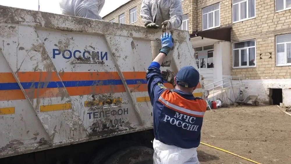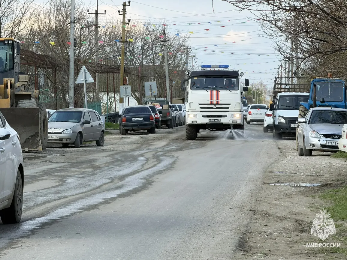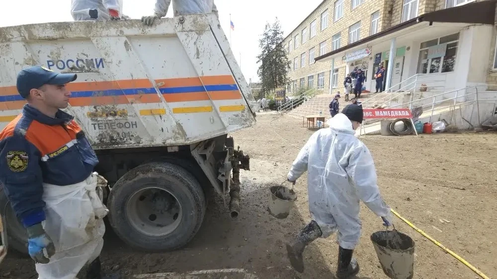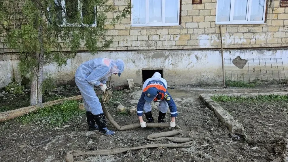 В Дербентском районе аэромобильная группировка Донского спасательного центра и местный пожарно-спасательный гарнизон откачивают воду, убирают иловые отложения, укрепляют берега, дезинфицируют школы, дома и придомовые территории.