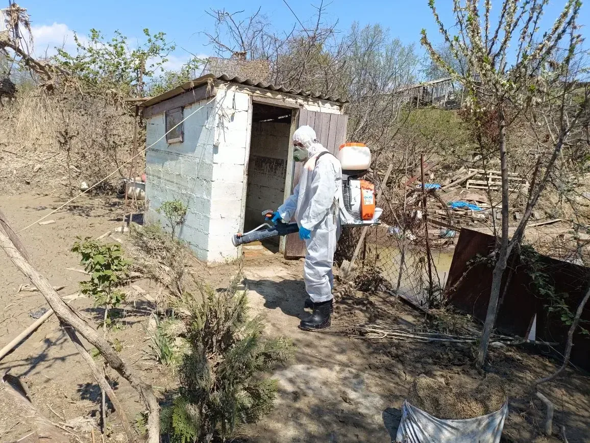 Также проводится профилактическая обработка подтопленых территорий дезинфицирующими средствами.