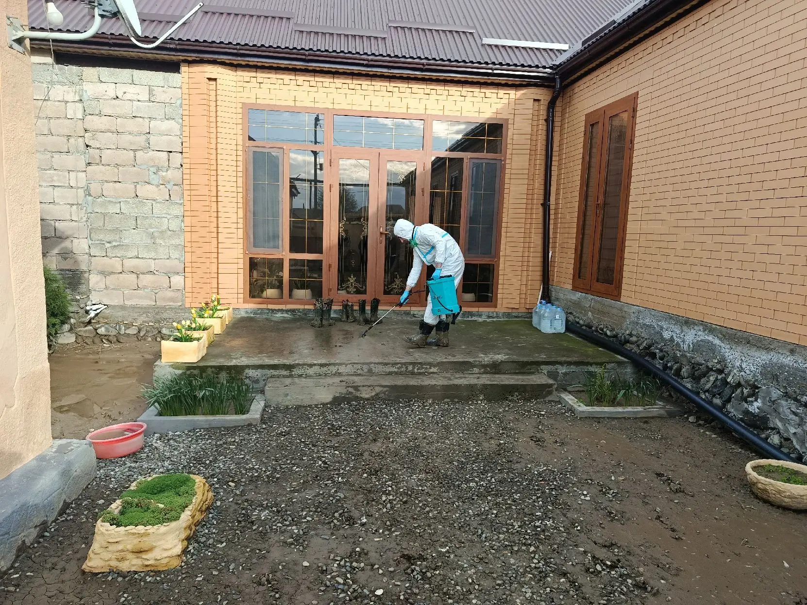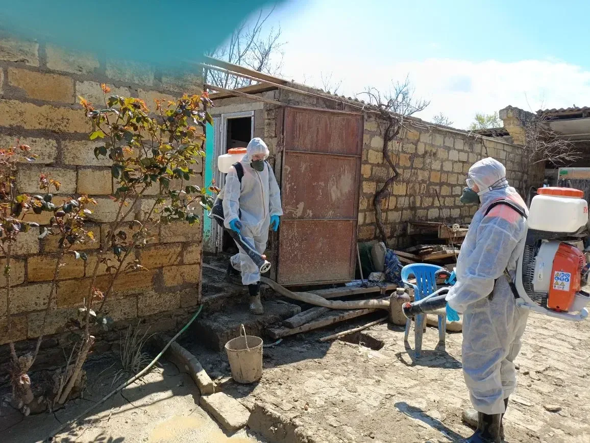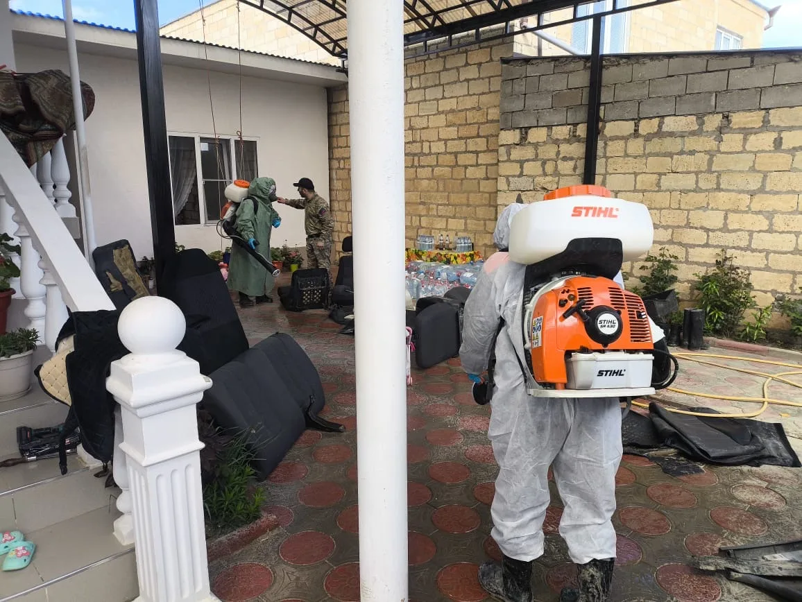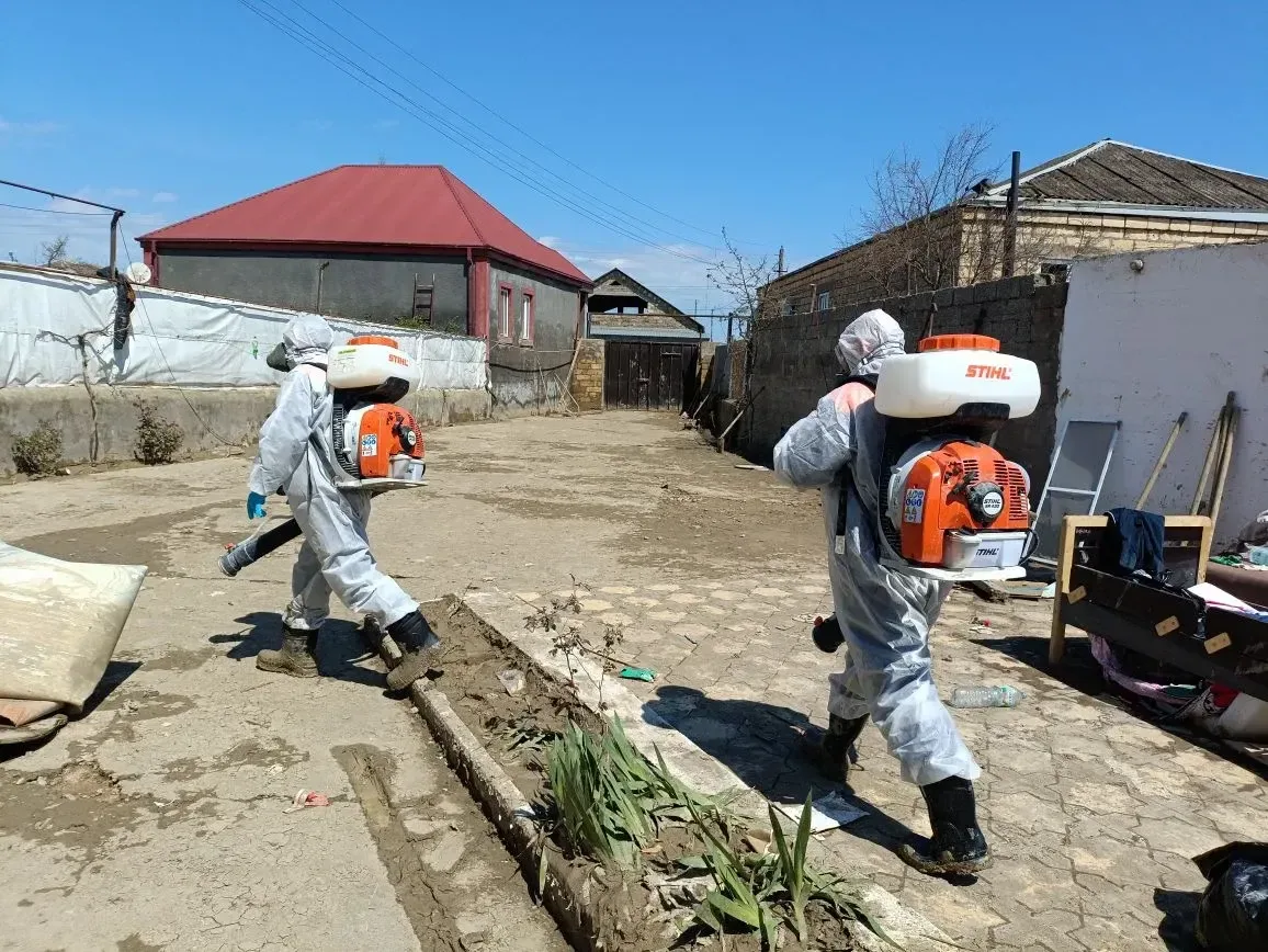 В частном секторе поселка Мамедкала Дербентского района продолжается профилактическая дезинфекция территорий, попавших под затопление - колодцев, выгребных ям, придомовых территорий, дворов и т.д.