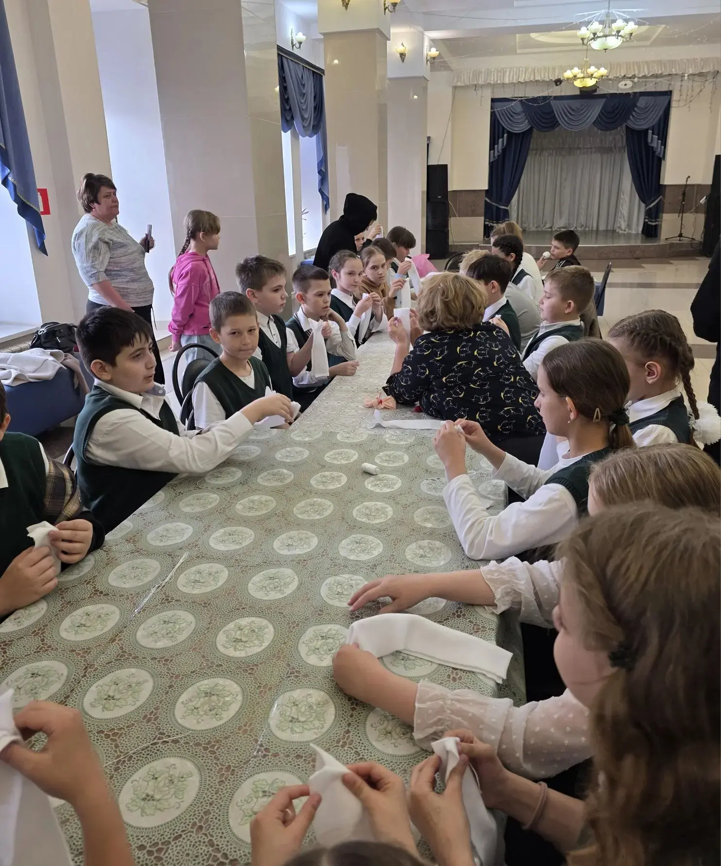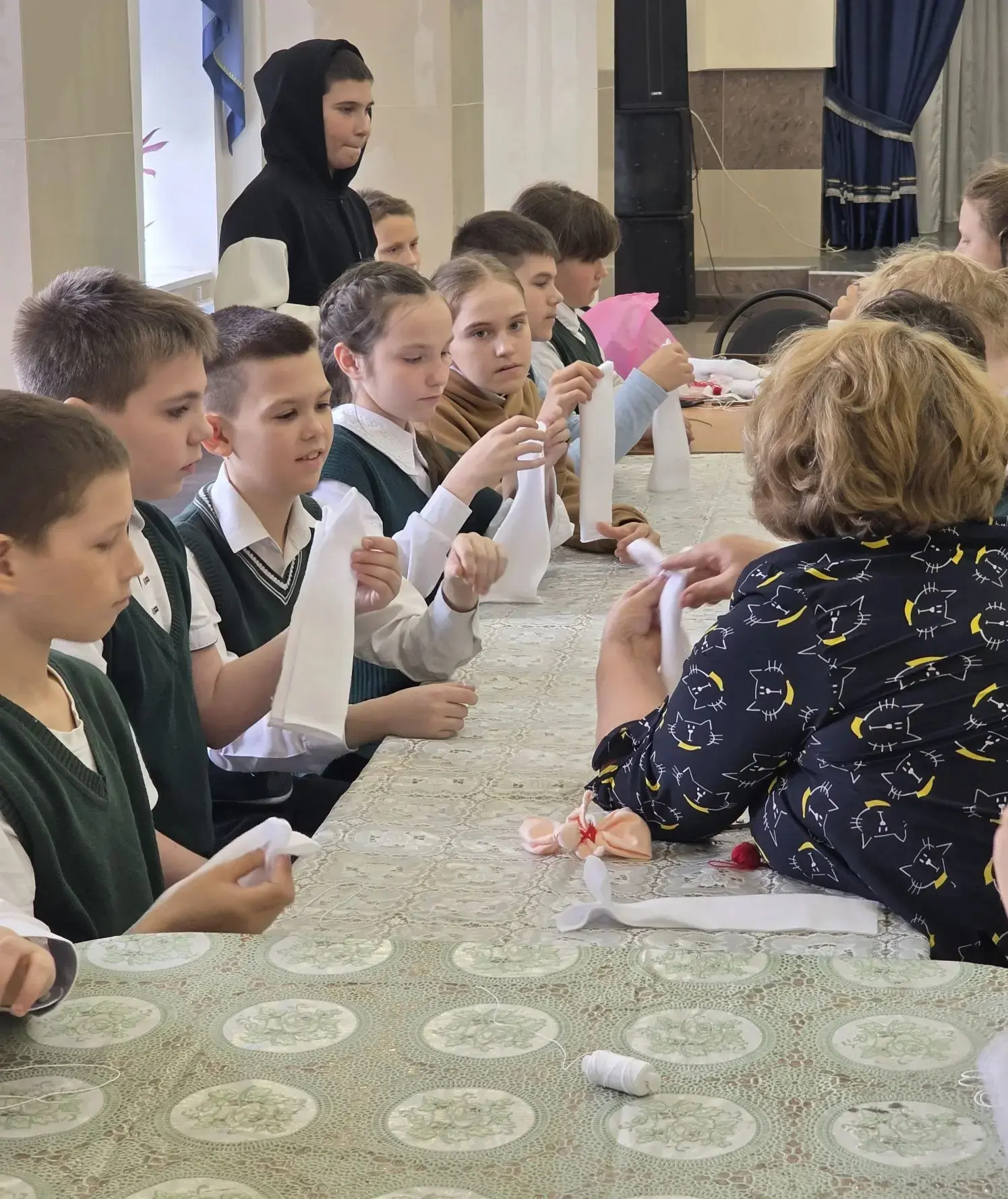 Под руководством мастера Надежды Владимировны Макаровой юные таланты погрузились в мир создания пасхальных оберегов. Ребята с увлечением мастерили традиционных тряпичных куколок, вкладывая в каждую свою работу частичку души и тепла. Из простых материалов – кусочка флиса и ниток – рождались настоящие маленькие шедевры, наполненные смыслом и добрыми пожеланиями.