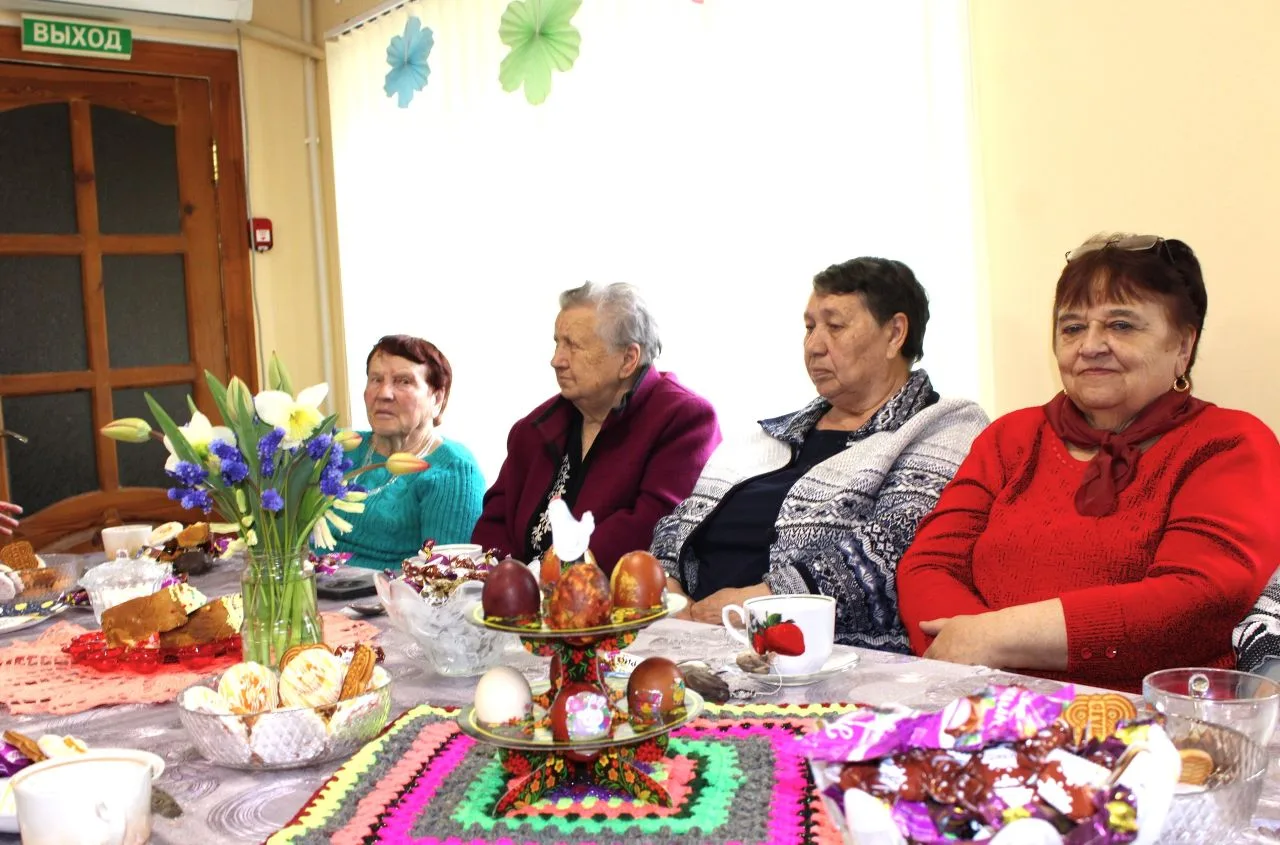 🌿🌺🌿 В завершение было организовано чаепитие – сладкий стол с пасхальными куличами. На мероприятии все наши дорогие гости получили массу позитивных эмоций и праздничное настроение. Люди старшего возраста с удовольствием пели народные песни, тепло и душевно общались, благодарили за праздник.
