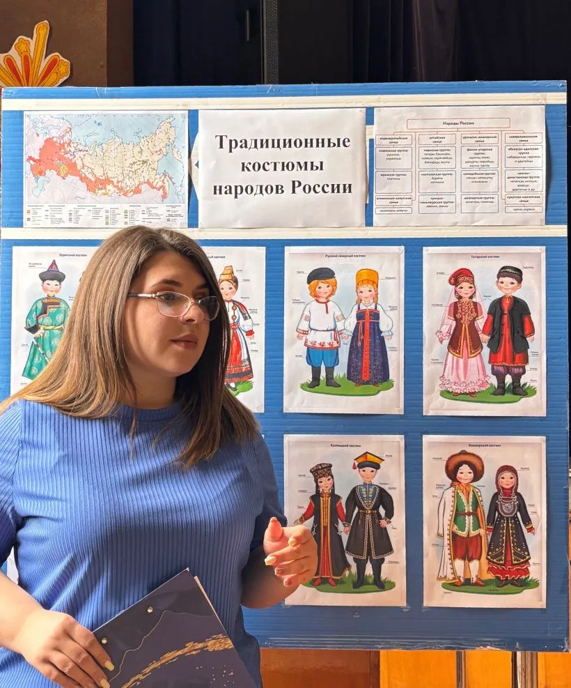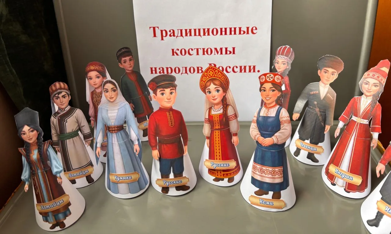А ведь 2026 год в России — год единства народов нашей необъятной страны. Поэтому встреча началась именно с рассказа о нашей большой родине, о том, какое богатство скрывается в её многонациональности. Маленьким слушателям поведали о том, как прекрасны и разнообразны наши народы, и, конечно же, особое внимание уделили национальным костюмам. Ребята узнали, какие они бывают, чем отличаются друг от друга, а где-то, возможно, находят и общие корни. Это было настоящее путешествие по культуре и традициям!