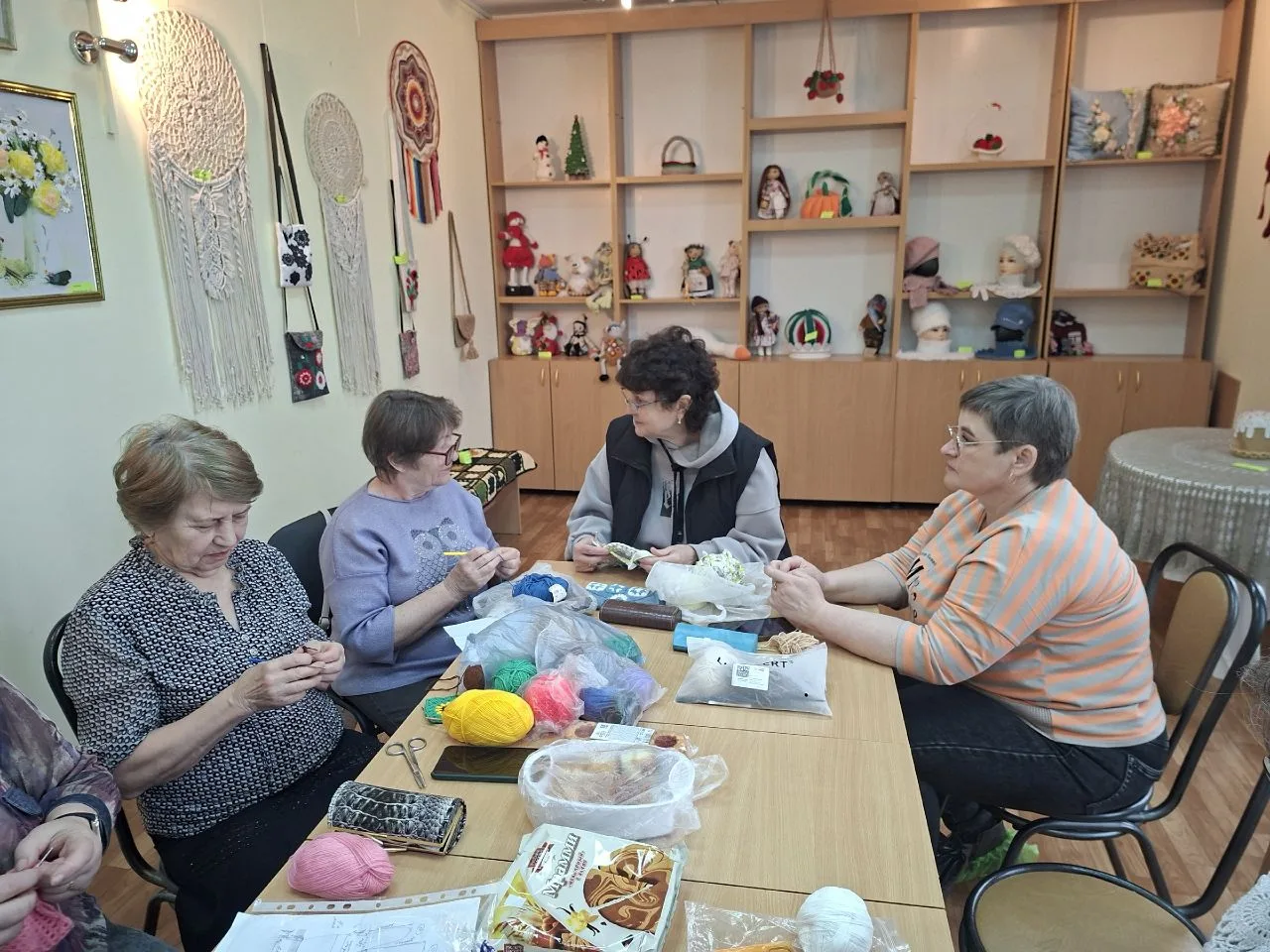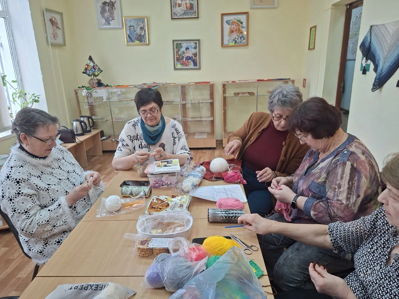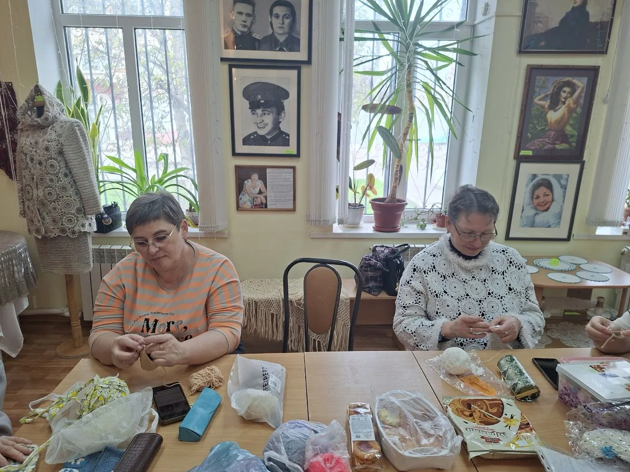 Снова в нашем музее - шуршание крючка и пряжи, лёгкое постукивание спиц, душевные разговоры мастериц...