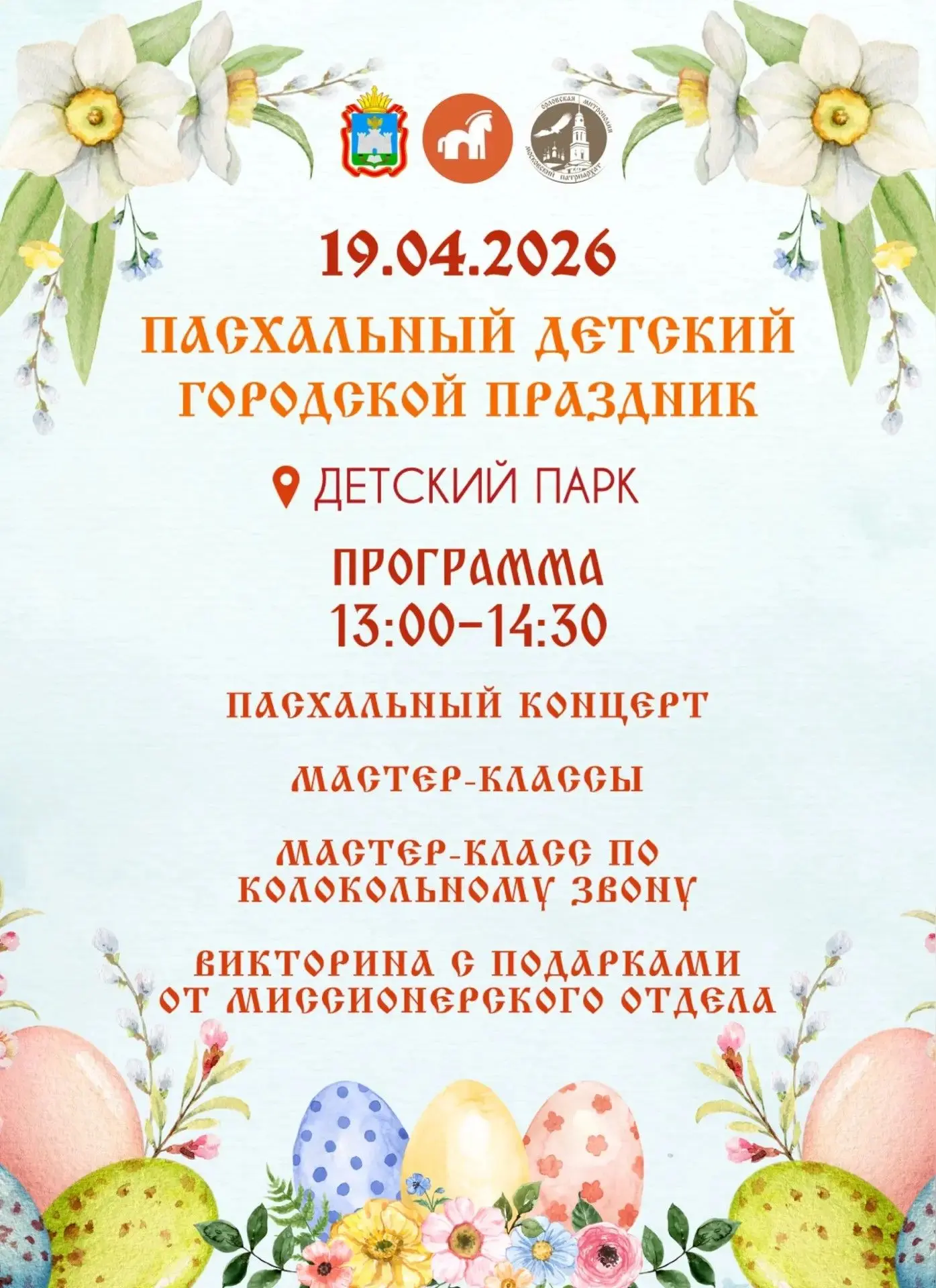 В это воскресенье, 19 апреля, на территории Детского парка состоится Пасхальный детский городской праздник.
