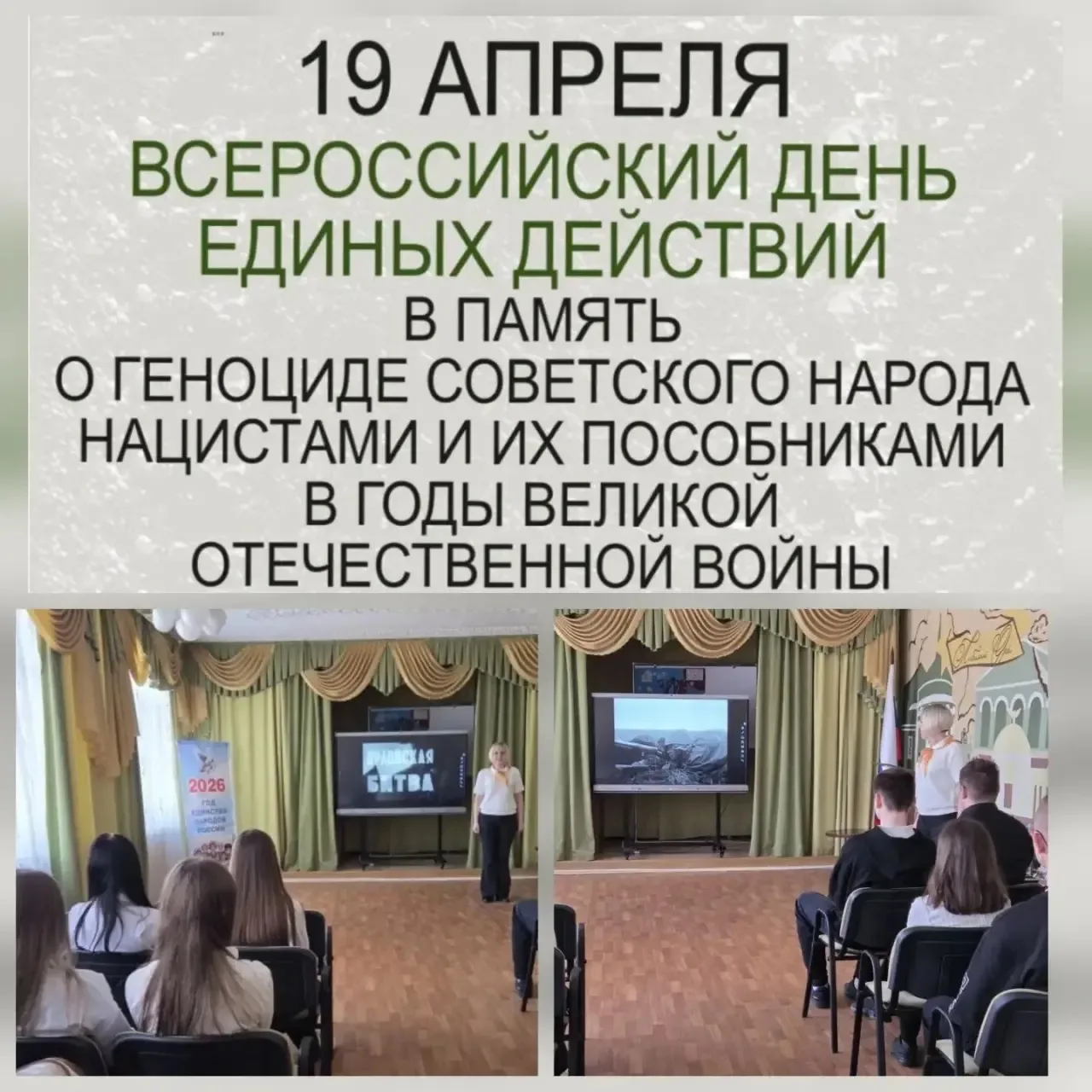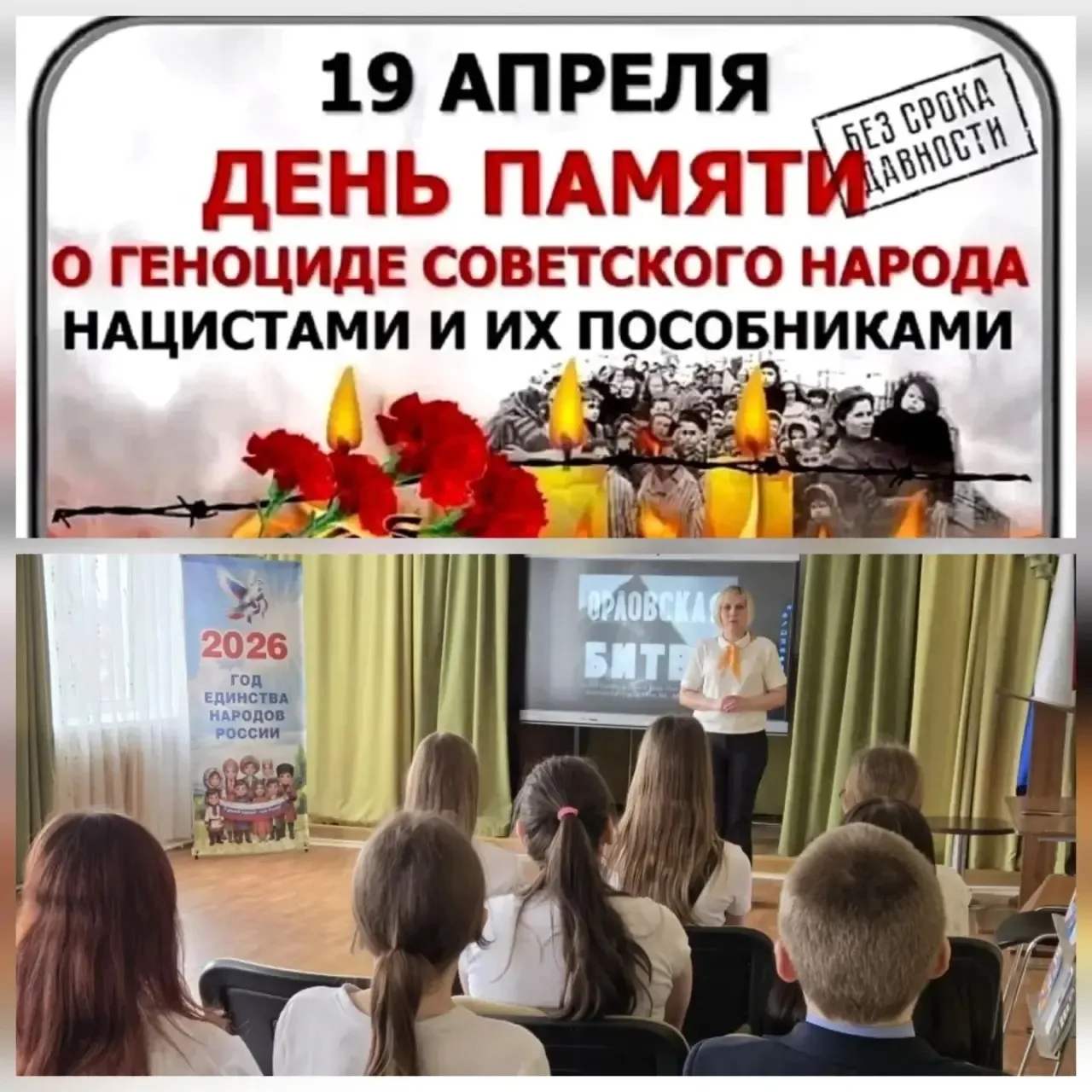 Сегодня мы вспоминаем миллионы невинных людей, ставших жертвами геноцида в годы Великой Отечественной войны. Их жизни оборвались, но память о них живёт в наших сердцах.