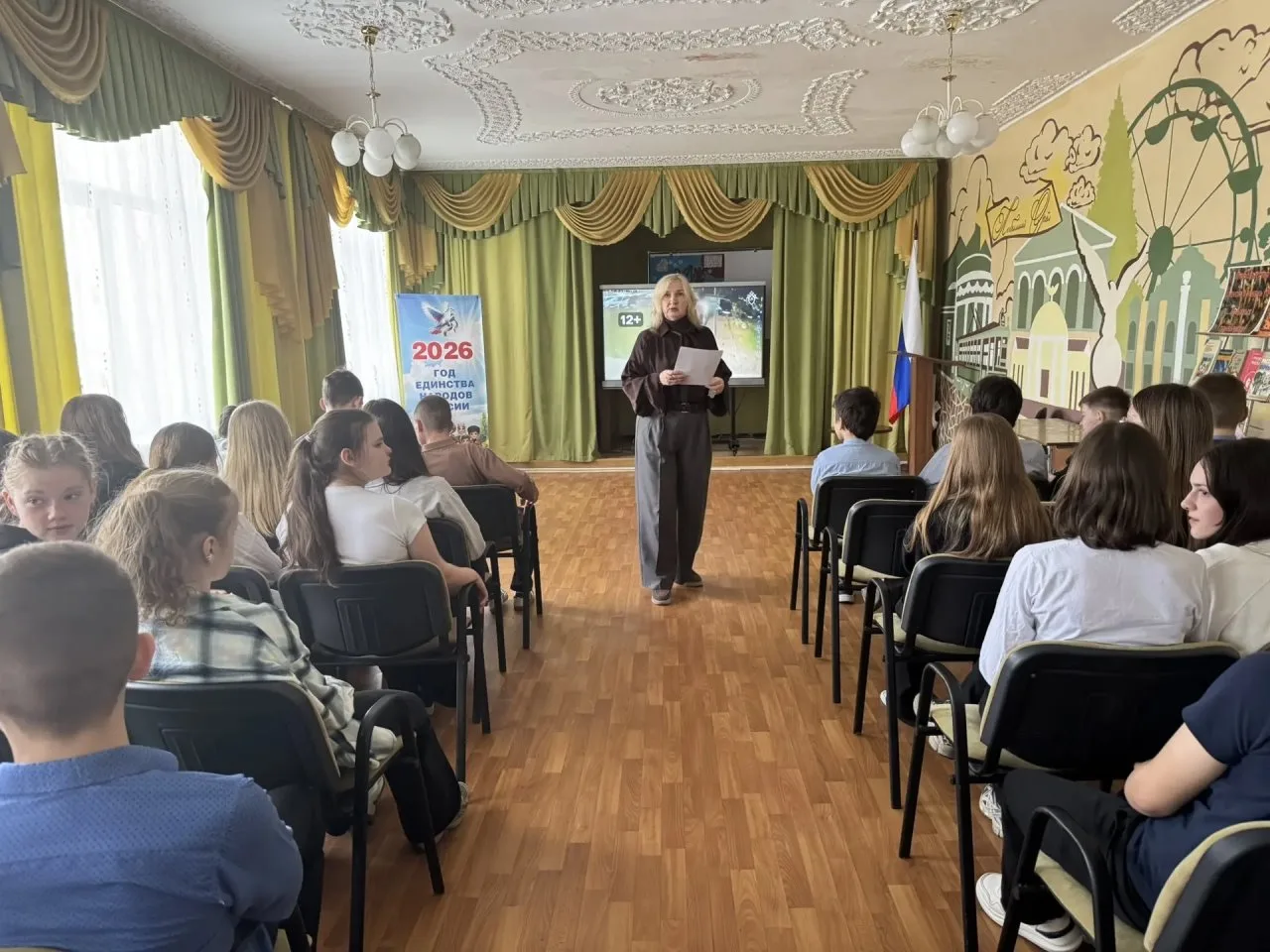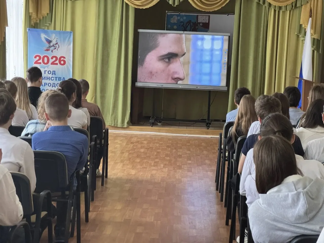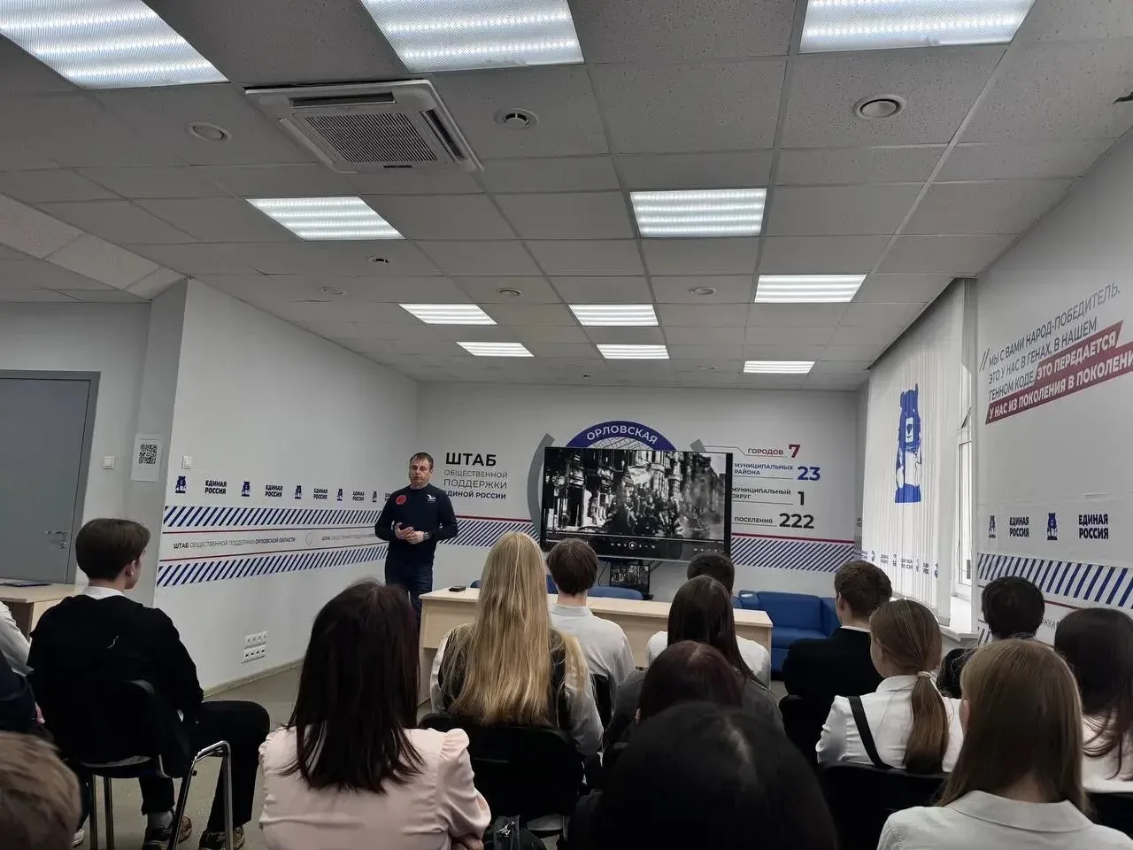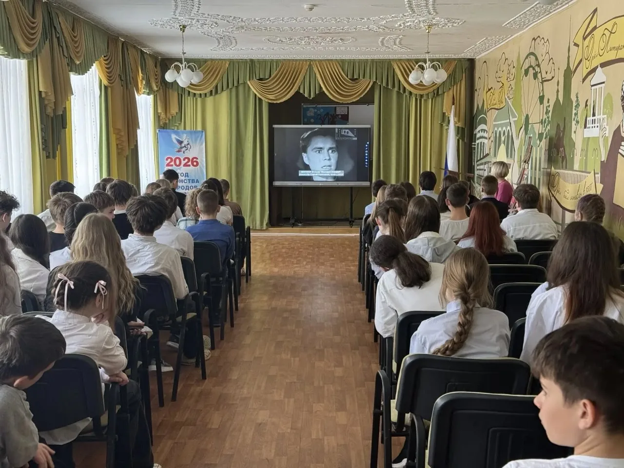 Советник директора по воспитанию и взаимодействию с детскими общественными объединениями организовал показ документального фильма, раскрывающей исторические факты о геноциде населения Орла и Орловщины в годы оккупации.