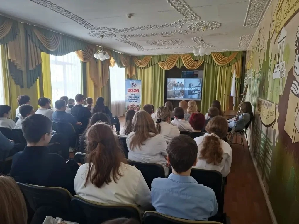 5А, 5Б, 5В, 7А, 7 Г, 8А,8Б, 8В, 9А, 9Б, 9Г, 10 классы продолжили просмотр видеоролика "Твой выбор".
