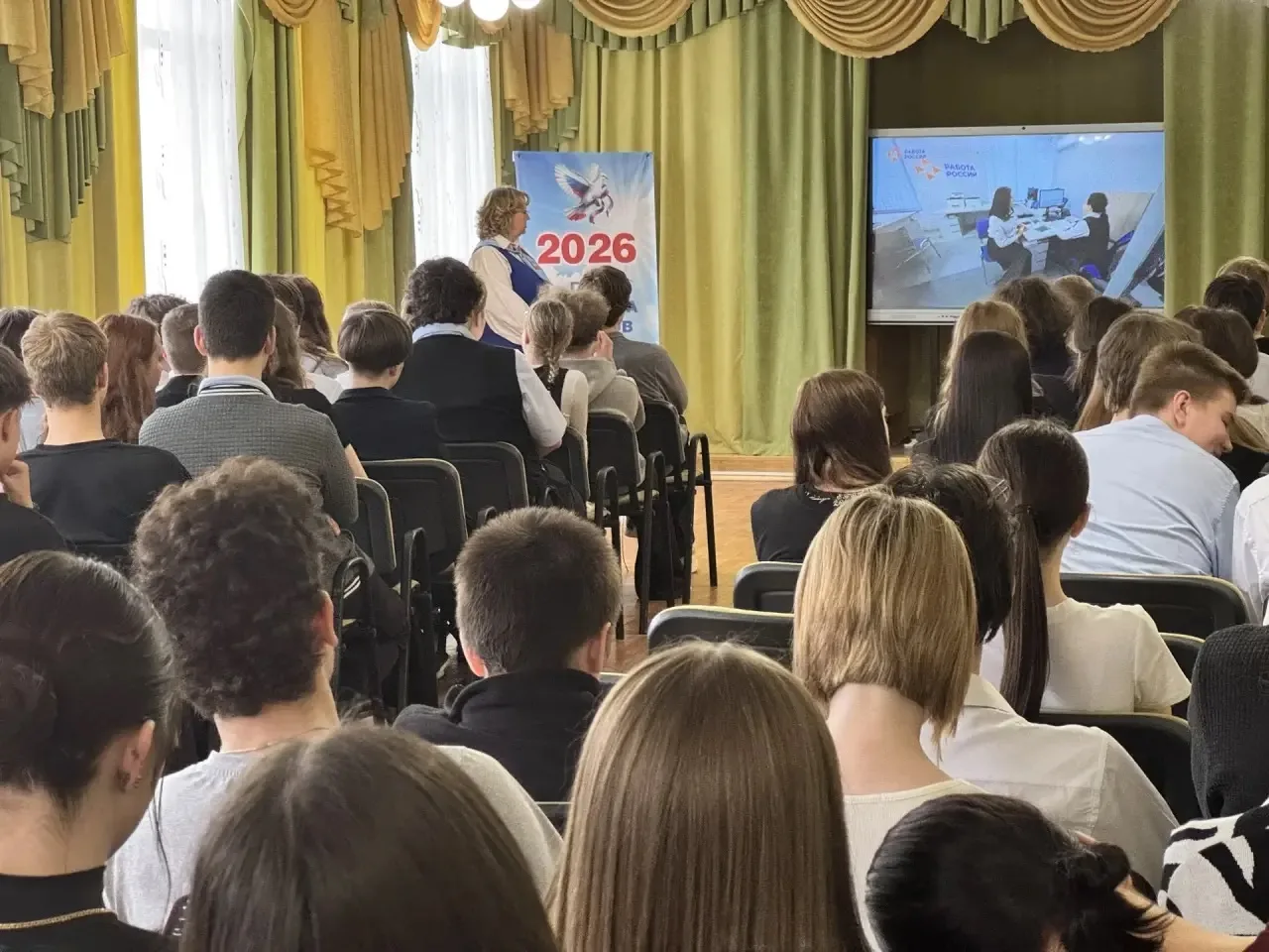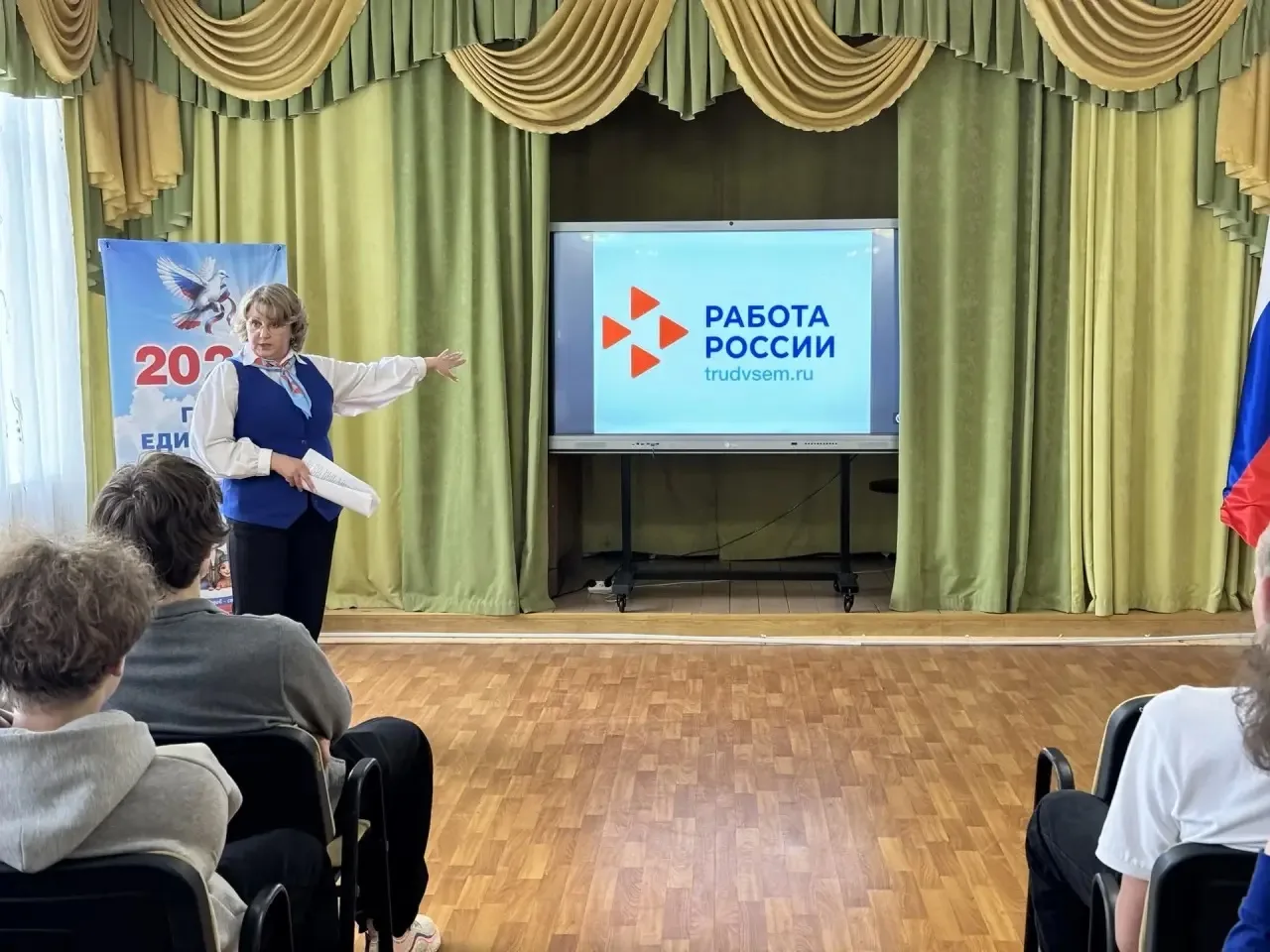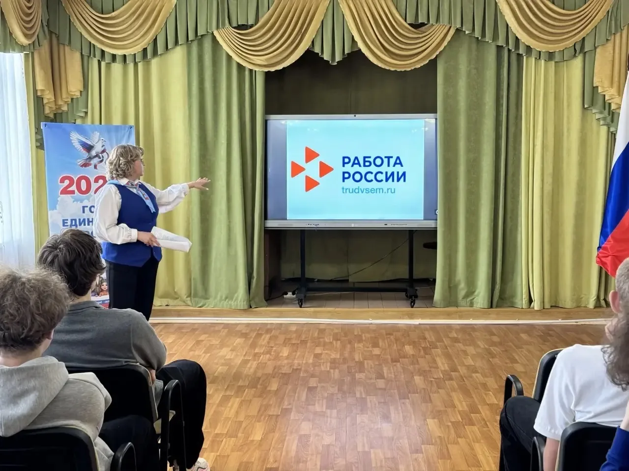 Сегодня в рамках внеурочного занятия «Россия — мои горизонты» обучающиеся 9-х классов встретились с представителем кадрового центра «Работа России» Ерохиной Ю. А.