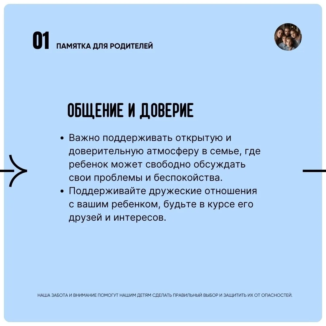 1 Открытое общение. Регулярно разговаривайте с детьми, создавайте атмосферу доверия. Обсуждайте темы здоровья и безопасности.