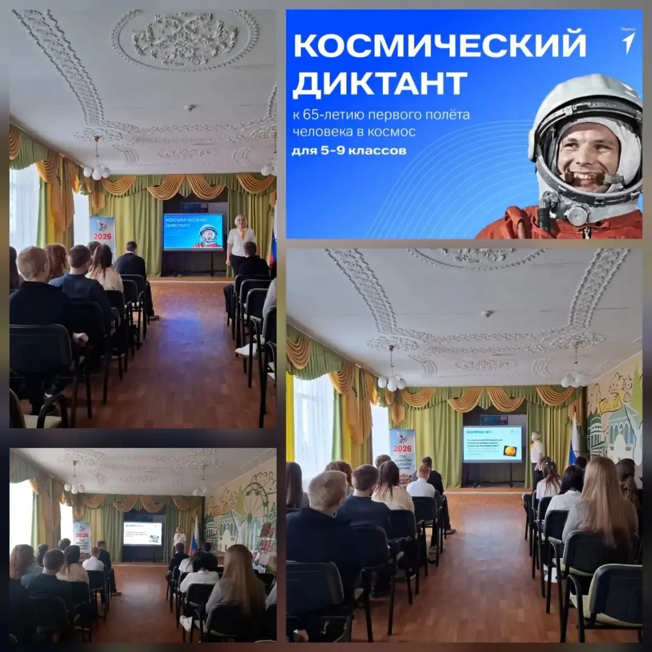 🚀 А ученики 7 «А» класса стали участниками всероссийской акции «Путь в космос». Они попробовали свои силы в «Космическом диктанте», посвящённом 65-летию полёта Юрия Гагарина, истории отечественной космонавтики, биографиям легендарных космонавтов и работе Международной космической станции.