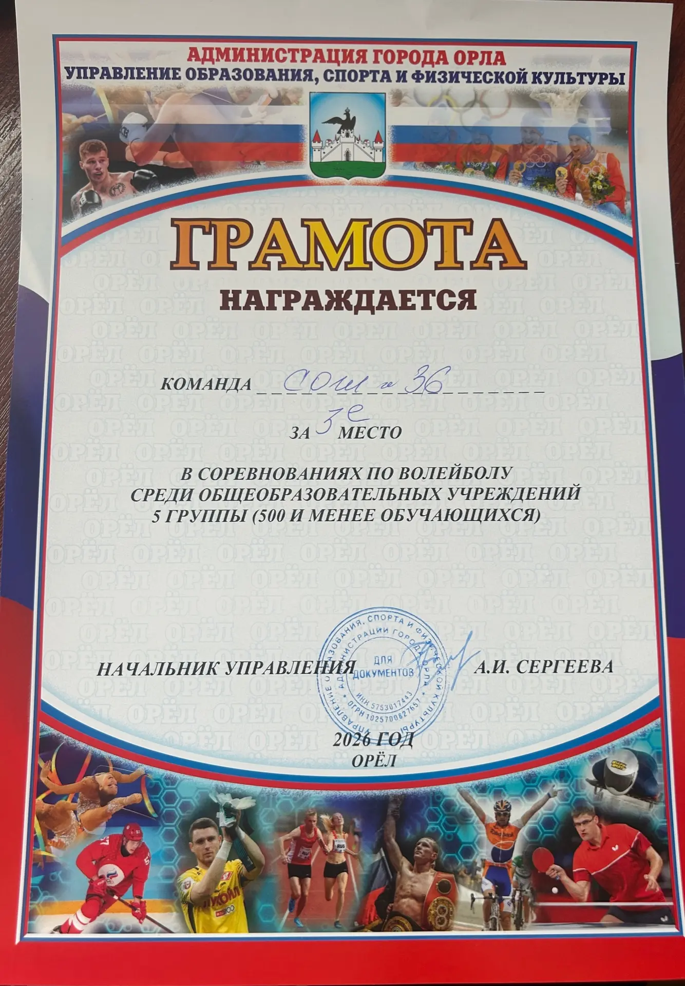 🎉 Обучающиеся нашей школы – бронзовые призёры по волейболу среди общеобразовательных учреждений города Орла! 🏆