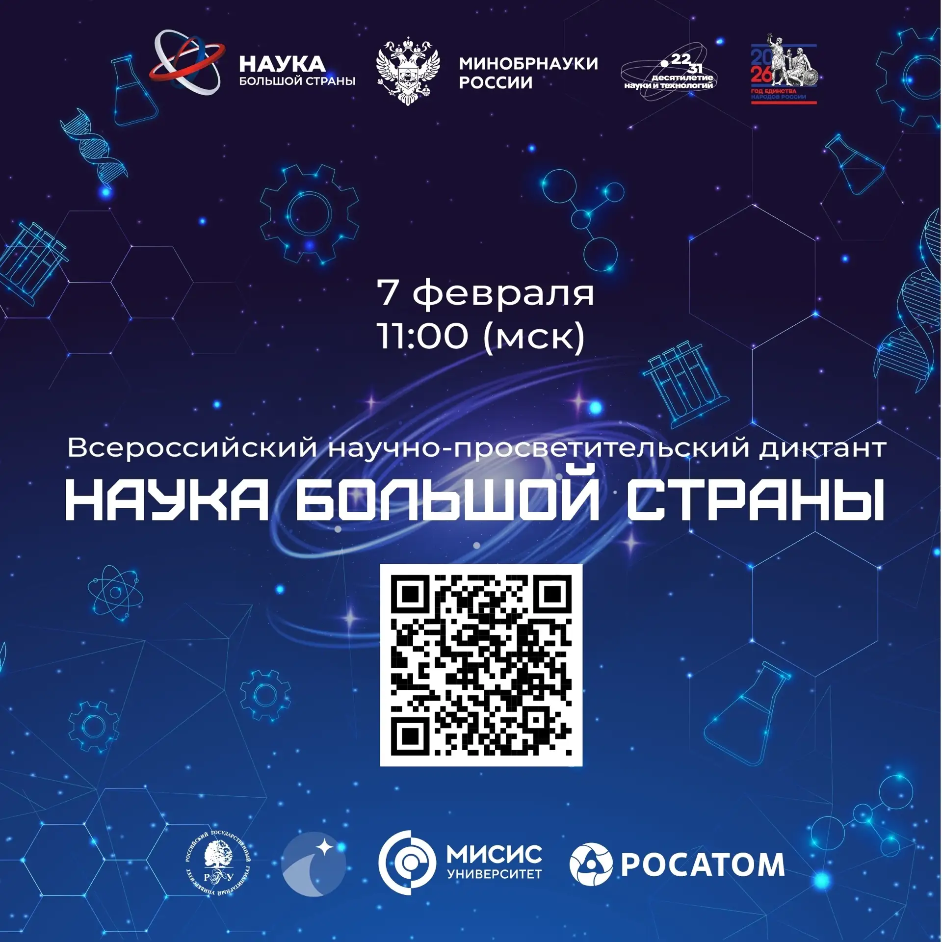 7 февраля пройдёт всероссийский научно-просветительский диктант «Наука большой страны», приуроченный ко Дню российской науки и Году единства народов России.