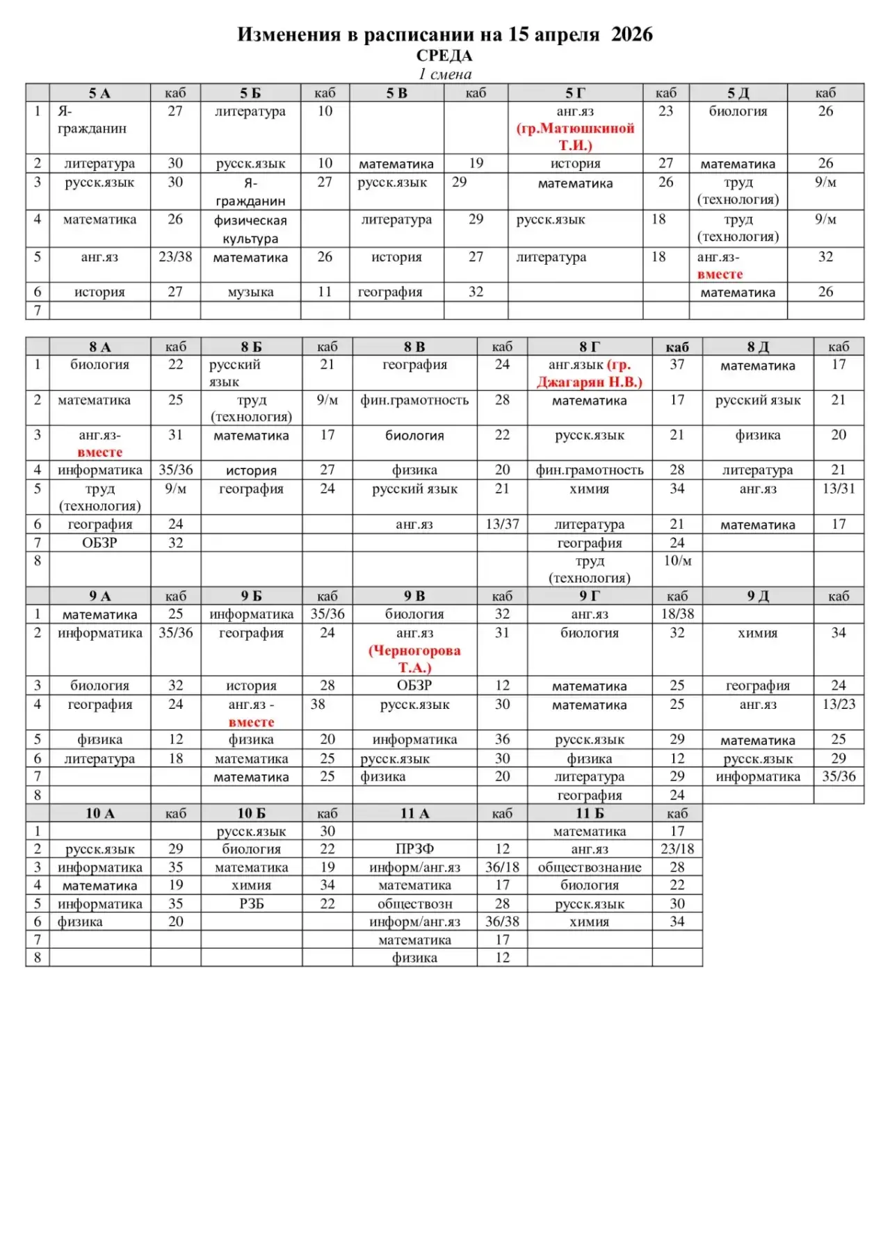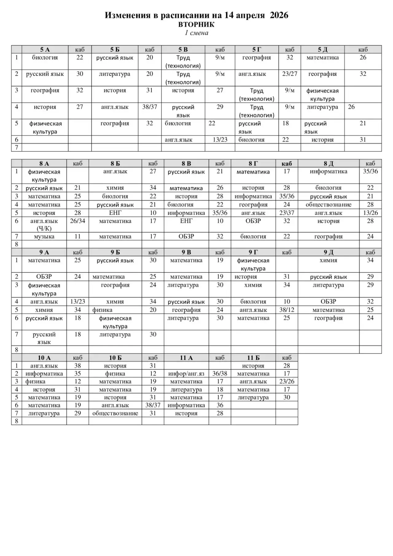- 🧪 Химия: 23–24 апреля 2026 года (классы 6–10).