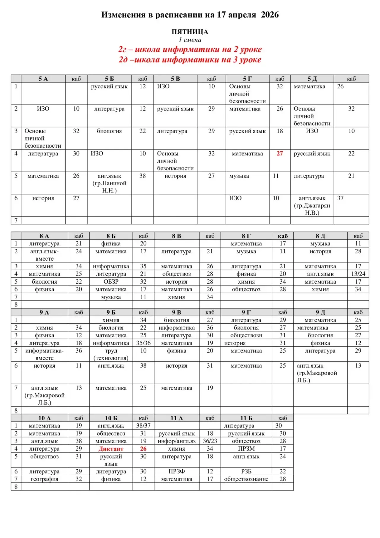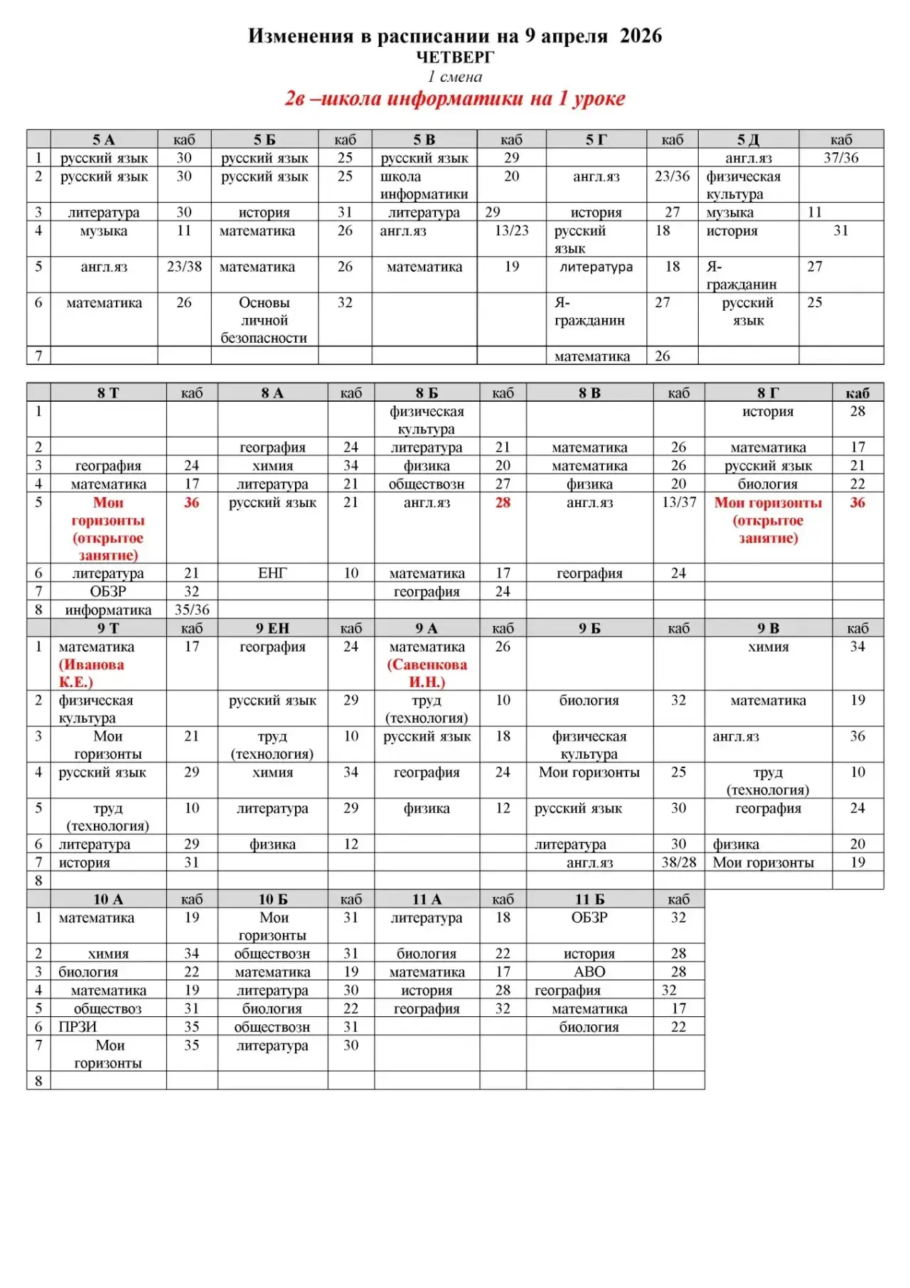 - 🔐 Информационная безопасность: 21–22 мая 2026 года (классы 4–10).