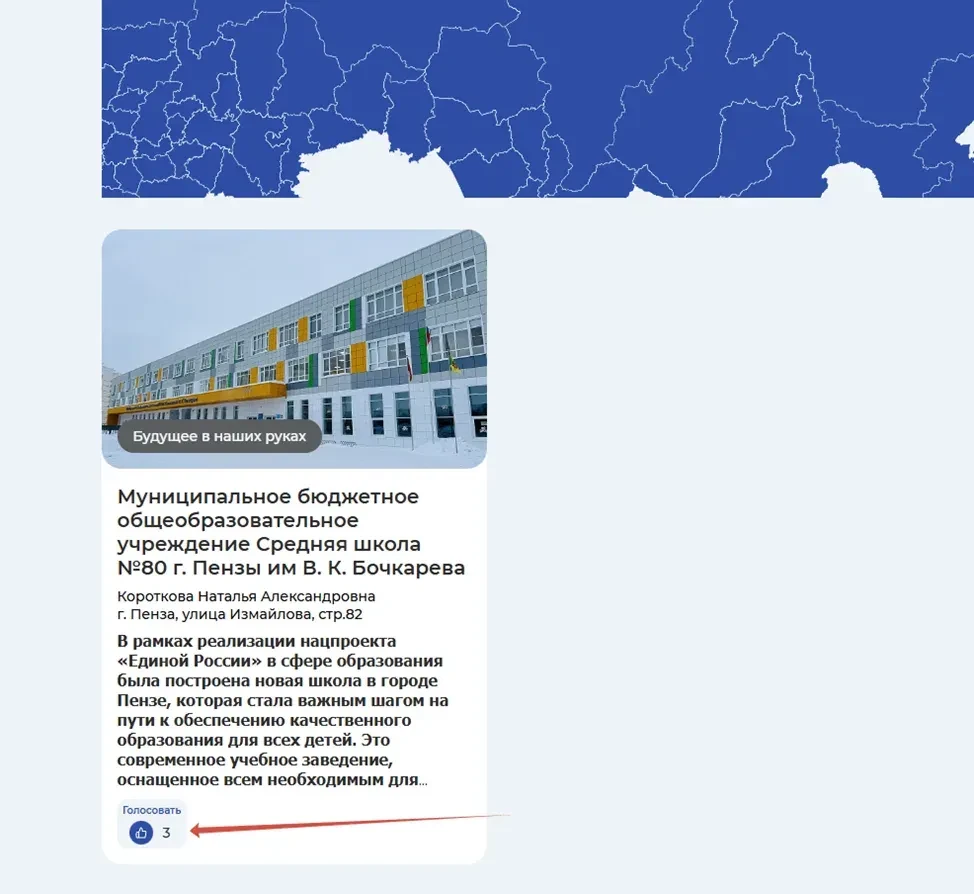 ❗❗❗❗Добрый день, дорогие друзья! Наша школа принимает участие в грантовом конкурсе позитивного фото объектов, созданных в рамках реализации Народной программы партии «Единая Россия». На фотографии, за которую мы приглашаем Вас проголосовать, МБОУ СОШ № 80 г. Пензы им. В. К. Бочкарева. Переходите по ссылке, голосуйте за нашу любимую школу! Автор работы – Н. А. Короткова. (см. подсказки ниже)