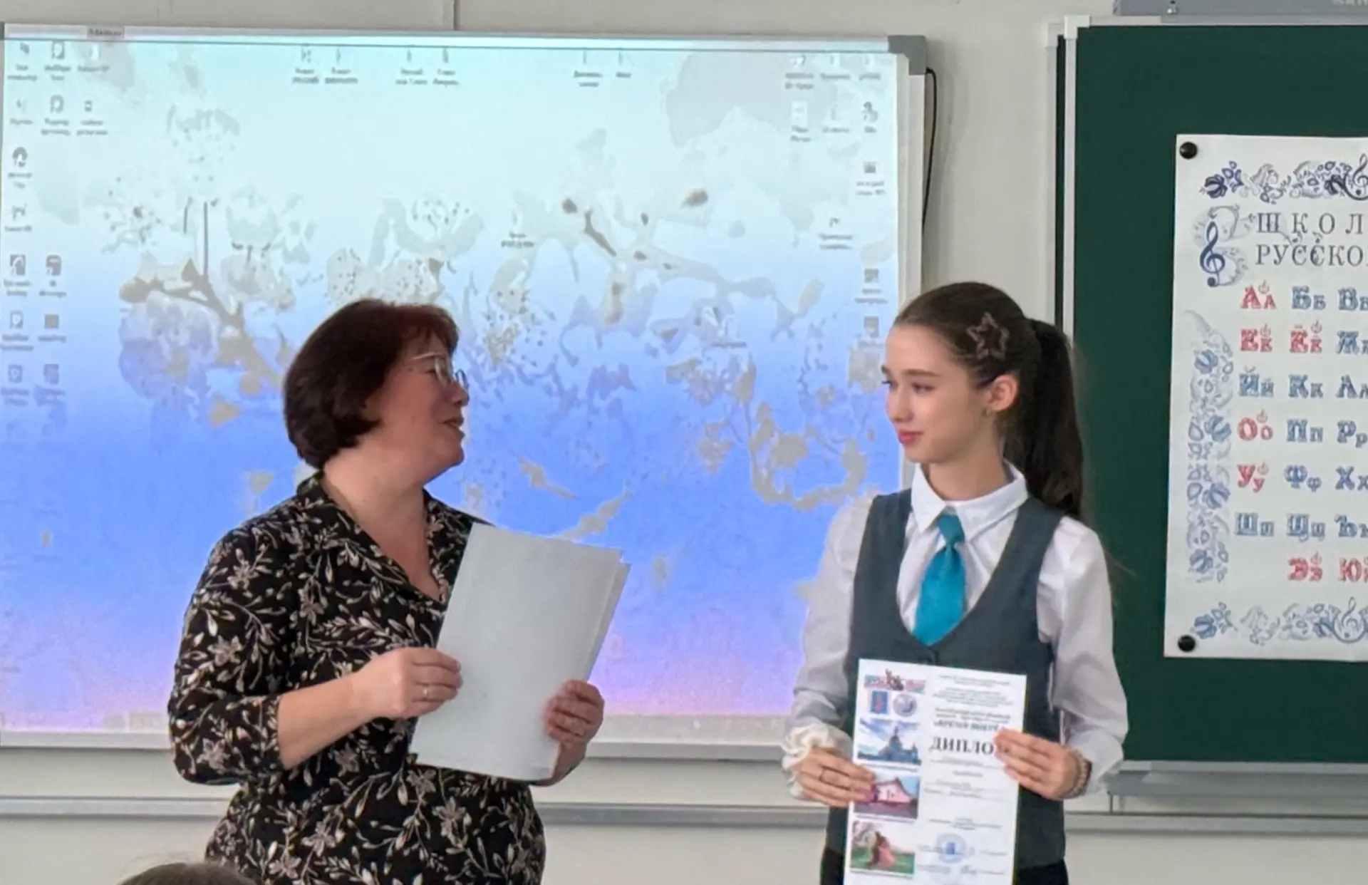 Поздравляем обучающуюся 10А класса Андрееву Ульяну (рук. Рыбкина Л. В.), ставшую призёром в возрастной группе 10-11 класс.