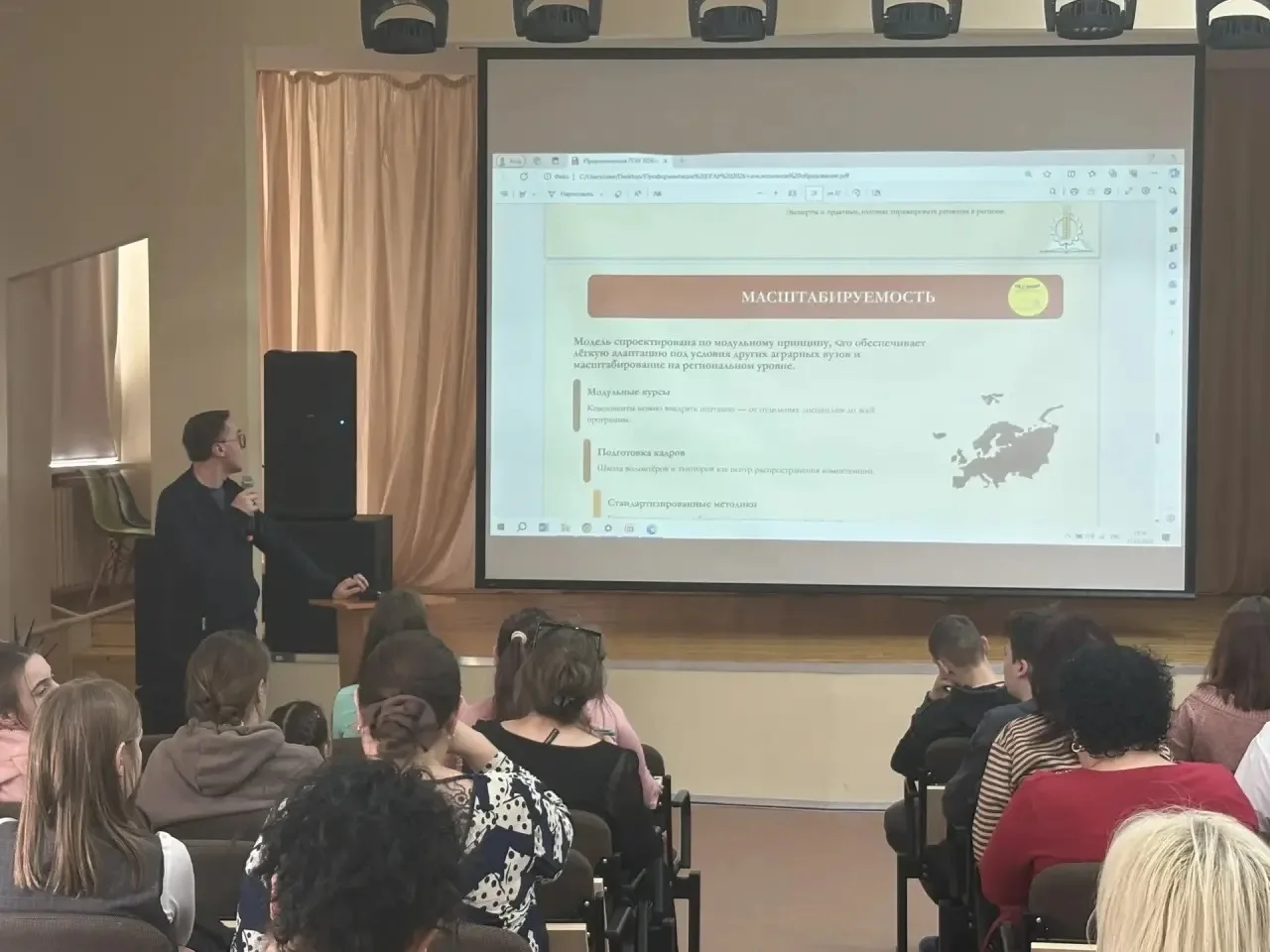 📊 Отдельным блоком были освещены вопросы организации доступной среды в Пензенском ГАУ. Представитель вуза рассказал о работе Центра поддержки лиц с ОВЗ — Центра поддержки «ЭК_С_КЛЮЗИВ», где созданы все необходимые условия для успешного обучения, развития творческого потенциала и психолого-педагогического сопровождения студентов с особыми образовательными потребностями.