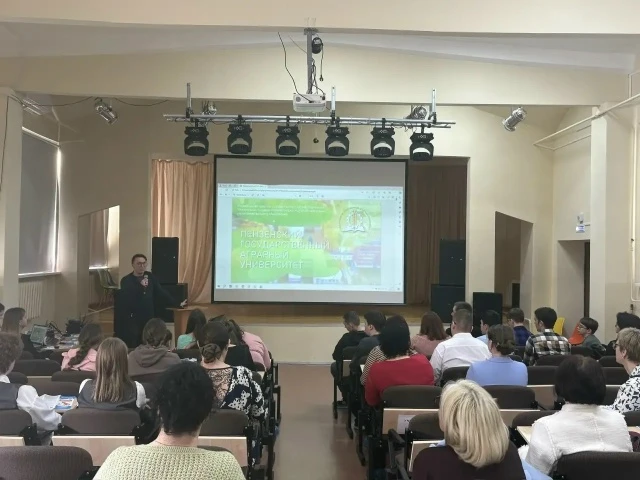 Представители университета представили информацию о реализуемых в Пензенском ГАУ образовательных программах бакалавриата и специалитета, условиях поступления, количестве бюджетных мест, о порядке проведения вступительных испытаний и условиях обучения.