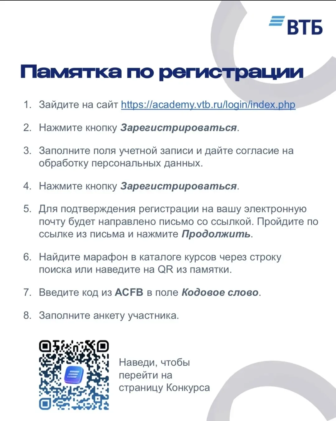Порядок действий для участия: