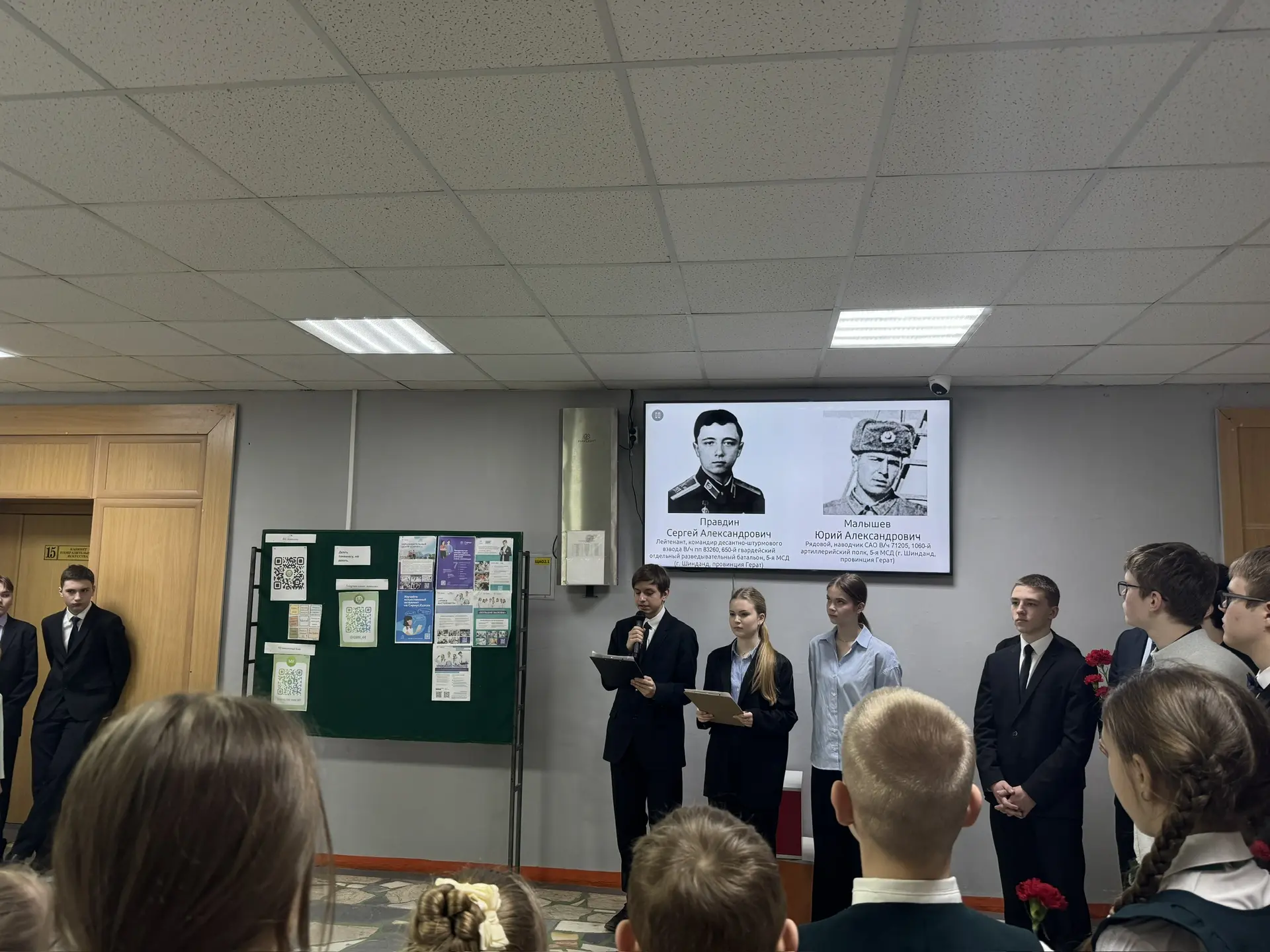 Среди воинов - интернационалистов были и выпускники нашей гимназии. Это Правдин Сергей и Малышев Юрий. Не жалея себя, сохранив жизни сотням своих товарищей по оружию, они геройски погибли в неравном бою, защищая право человека на свободную и счастливую жизнь.