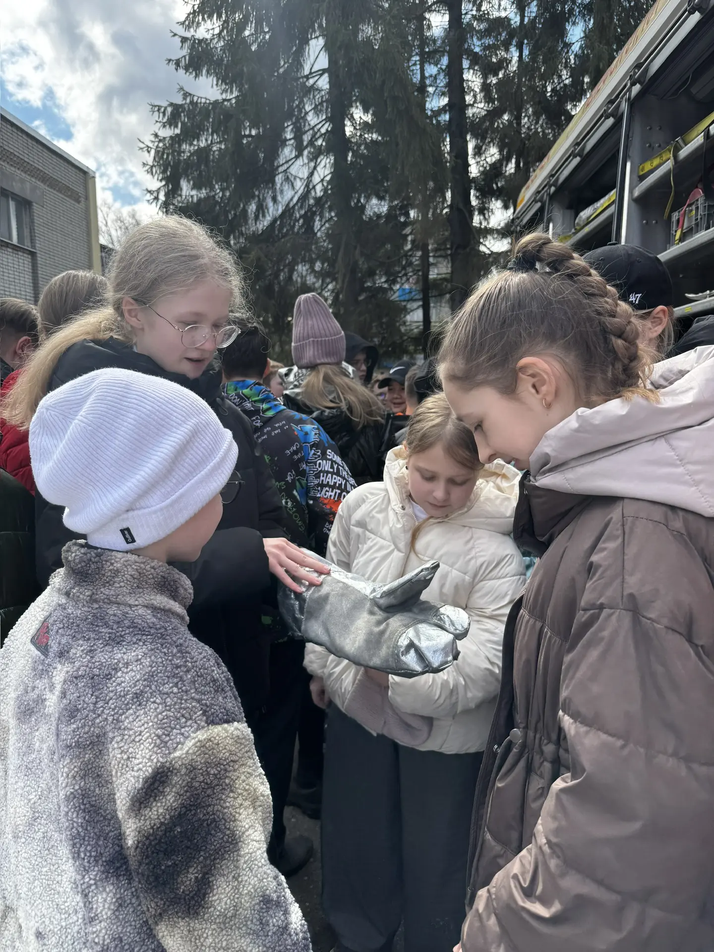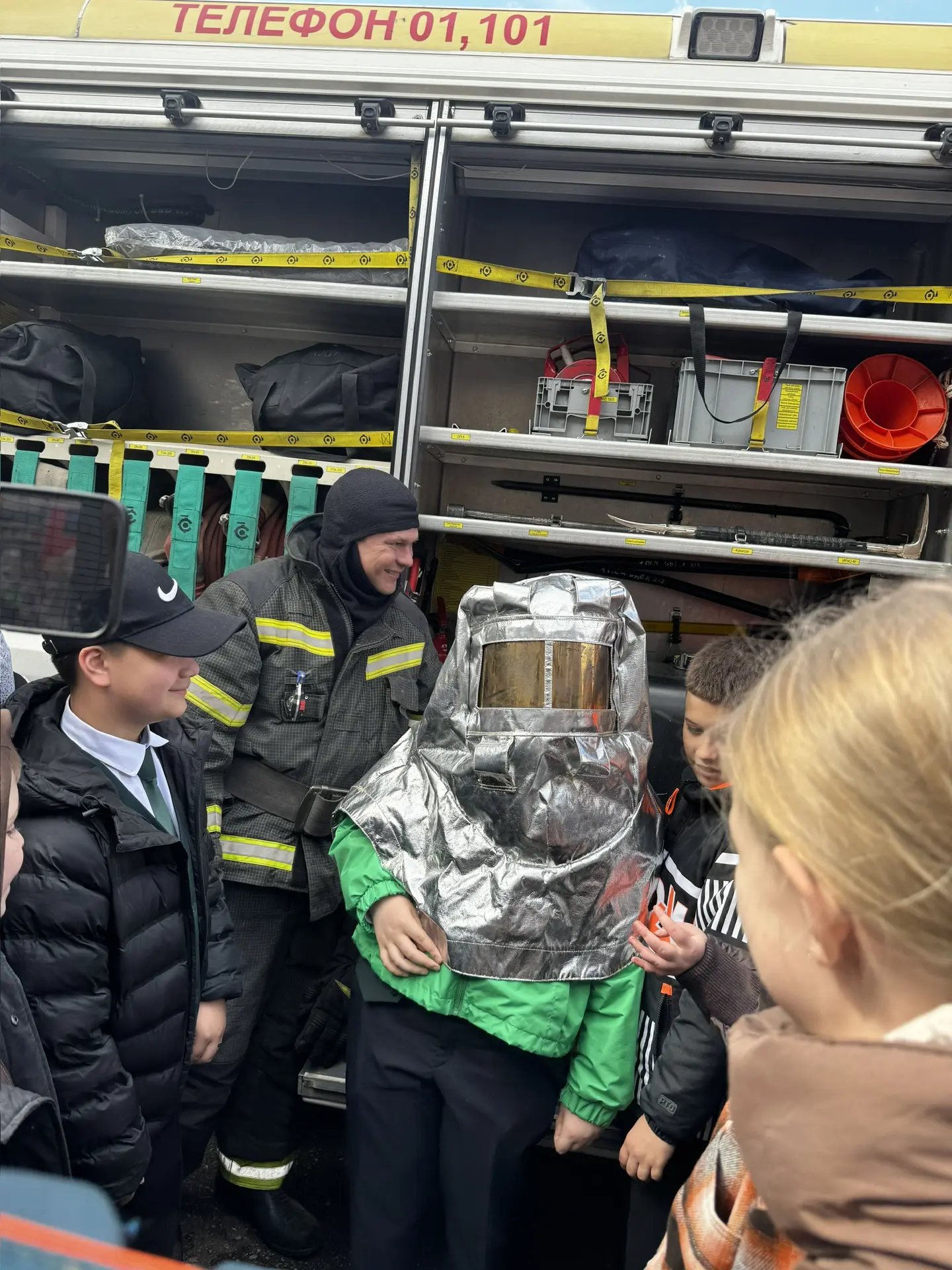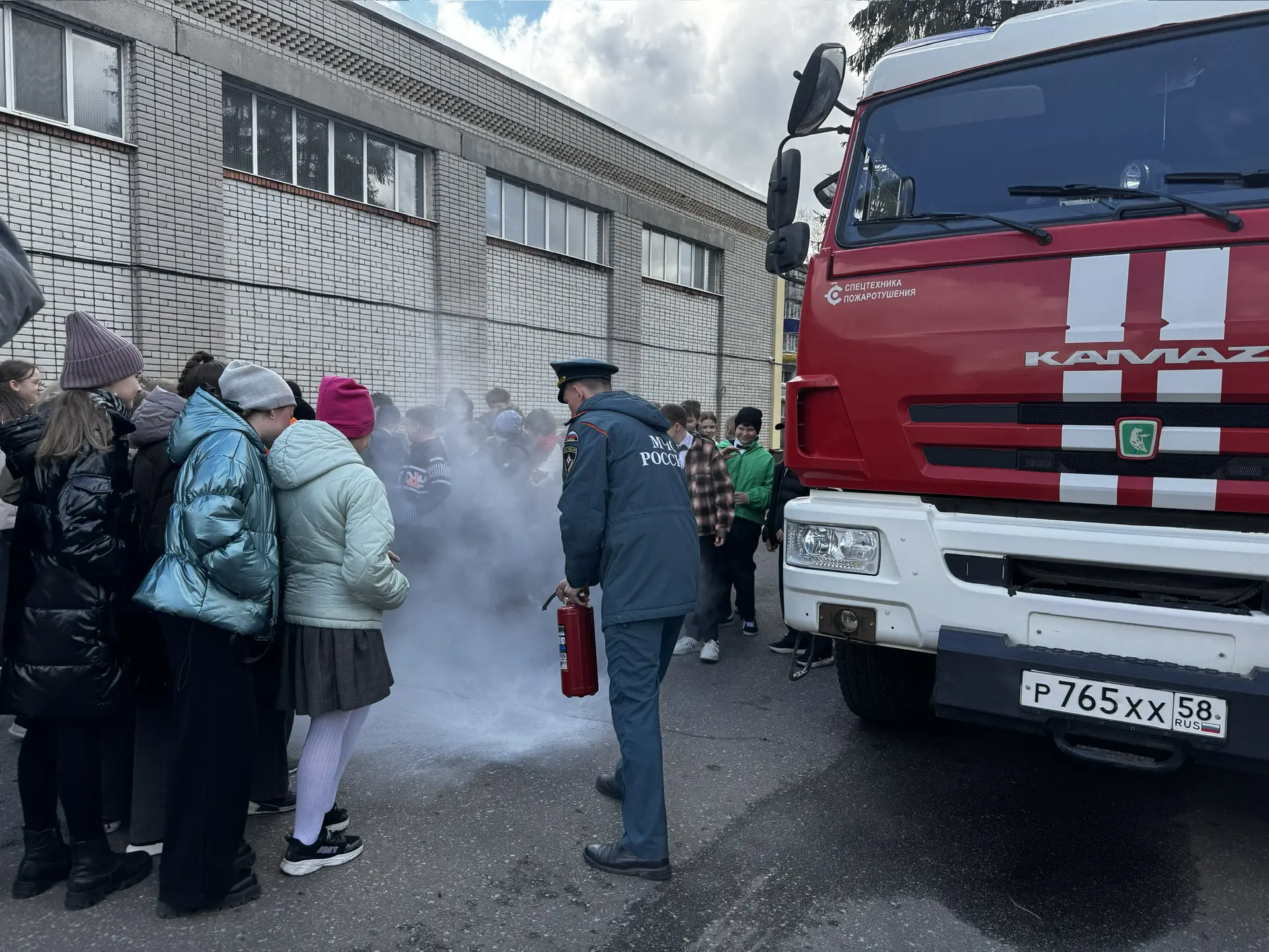 Обучающиеся с восторгом осмотрели настоящую пожарную машину, примерили боевую форму пожарных и даже попробовали себя в роли спасателей, потушив условный очаг возгорания огнетушителем.