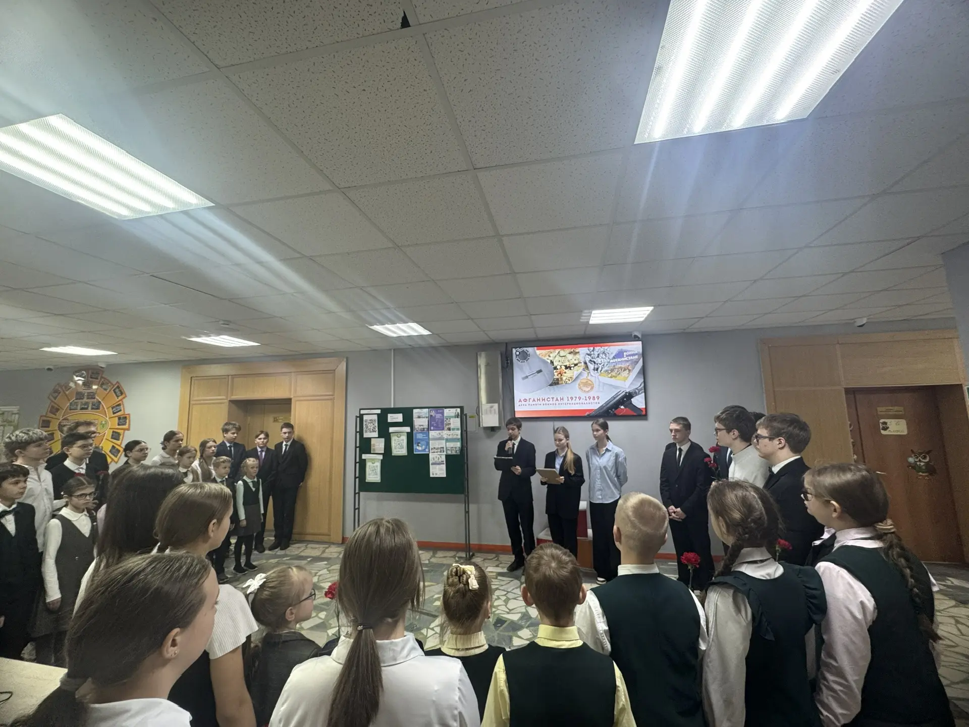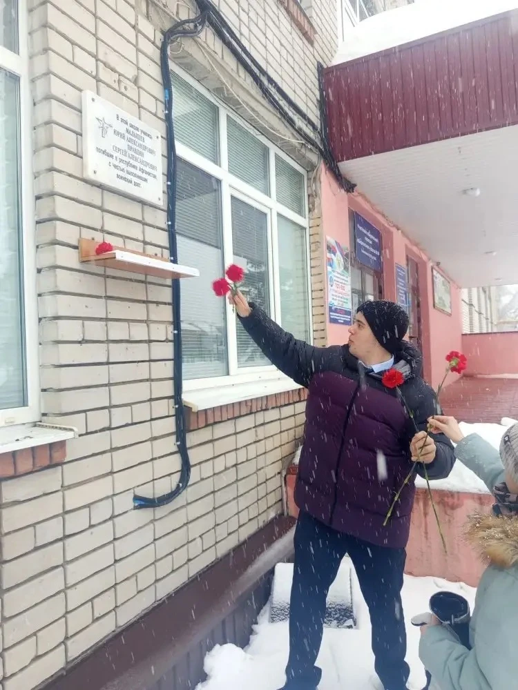 Сегодня в гимназии организованы уроки мужества, возложение цветов к мемориальной доске выпускников-участников Афганской войны, торжественная линейка, где учащиеся гимназии почтили память минутой молчания.