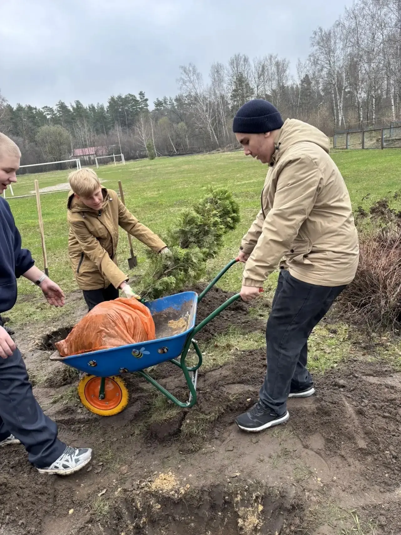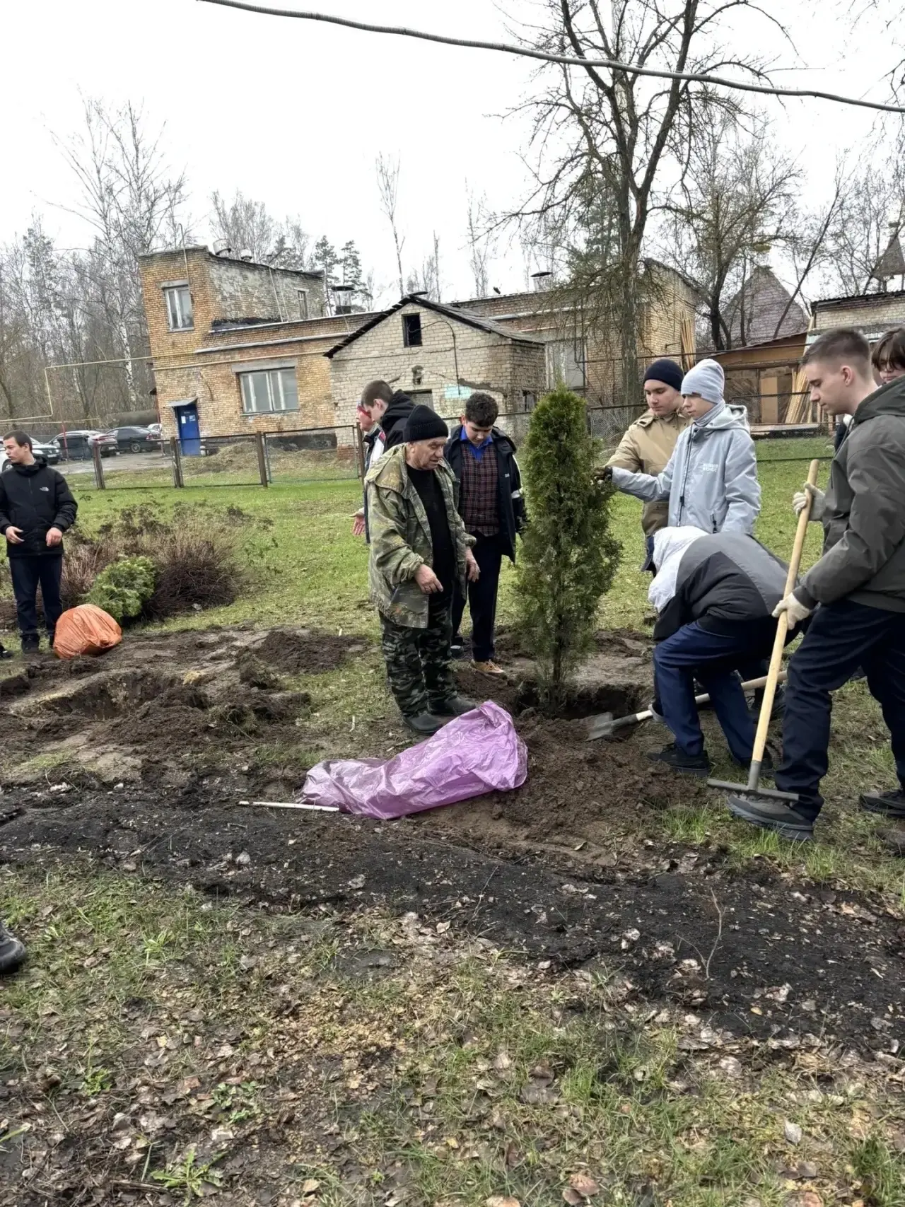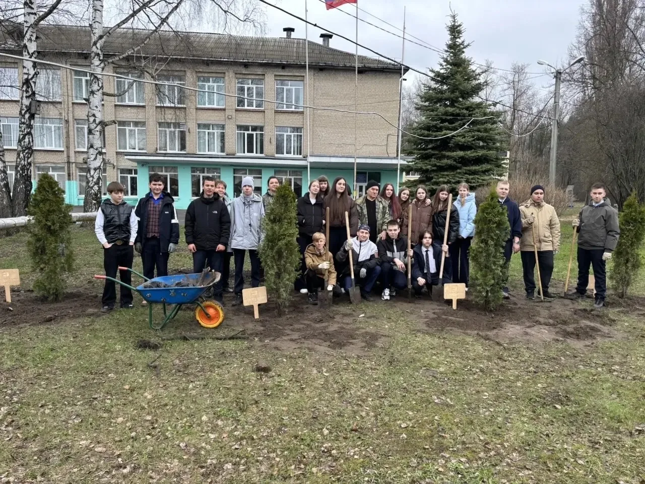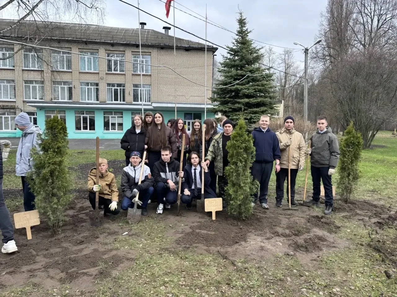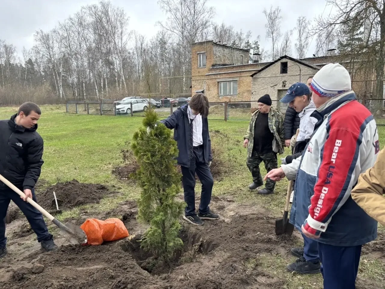 Сегодня, 14 апреля 2026 года, на пришкольной территории корпуса №5 появились новые зелёные жители — туи. Эти саженцы были подарены компанией ООО «НОРД-ПАК» (генеральный директор — Горбунов Павел Николаевич).