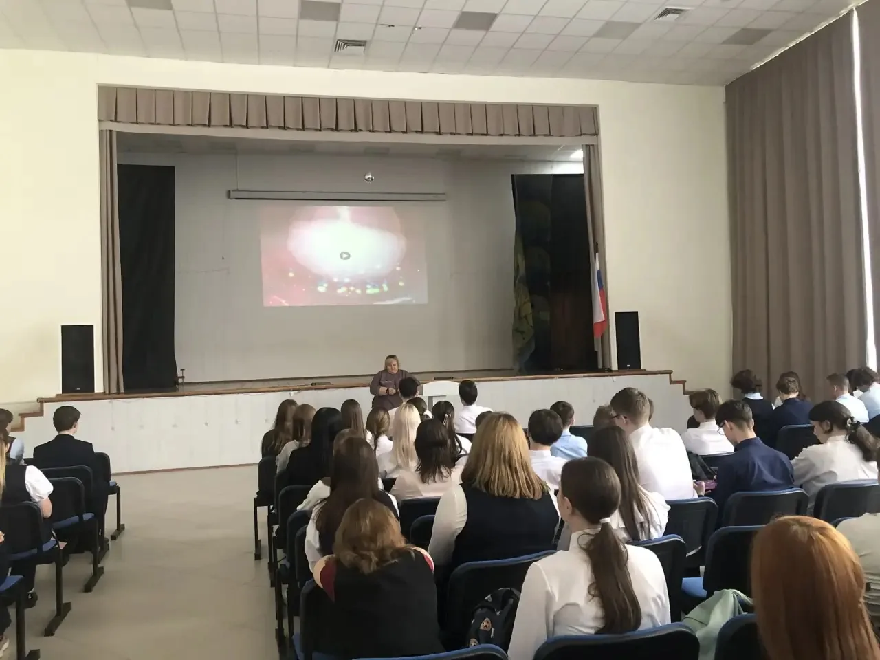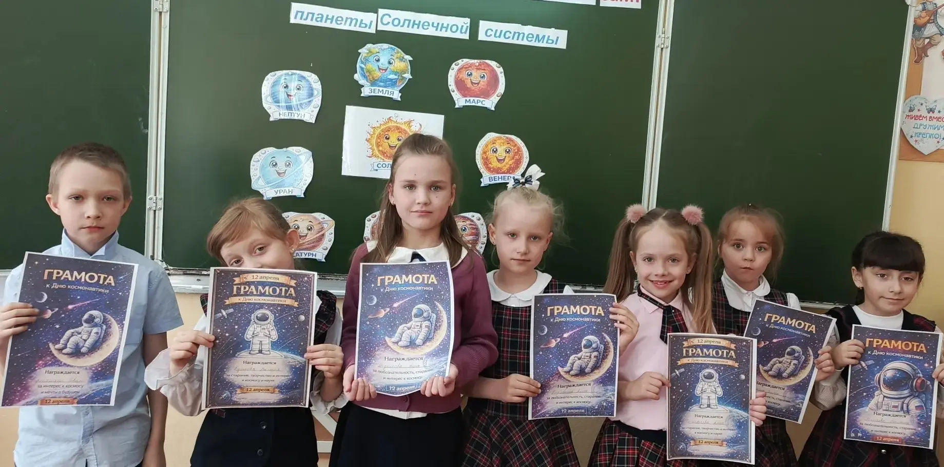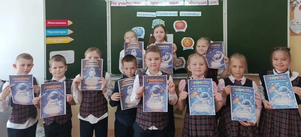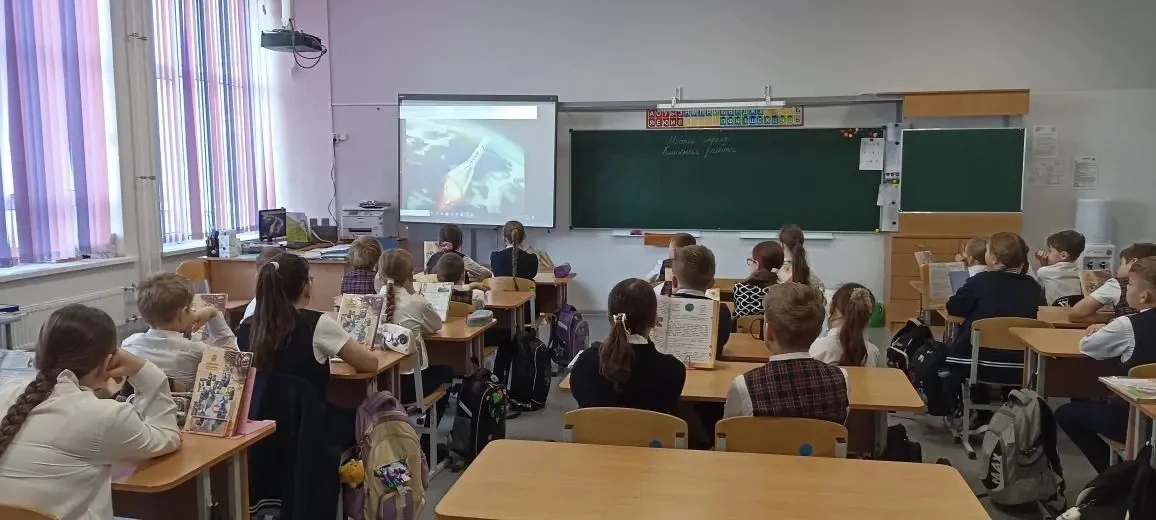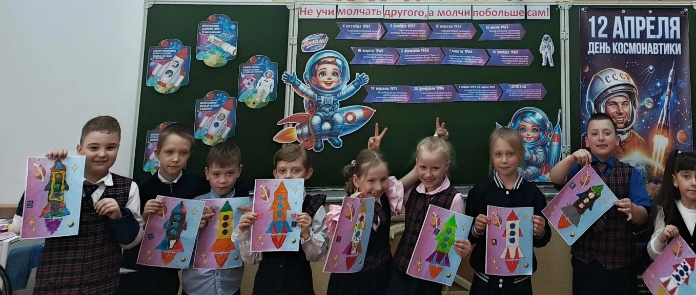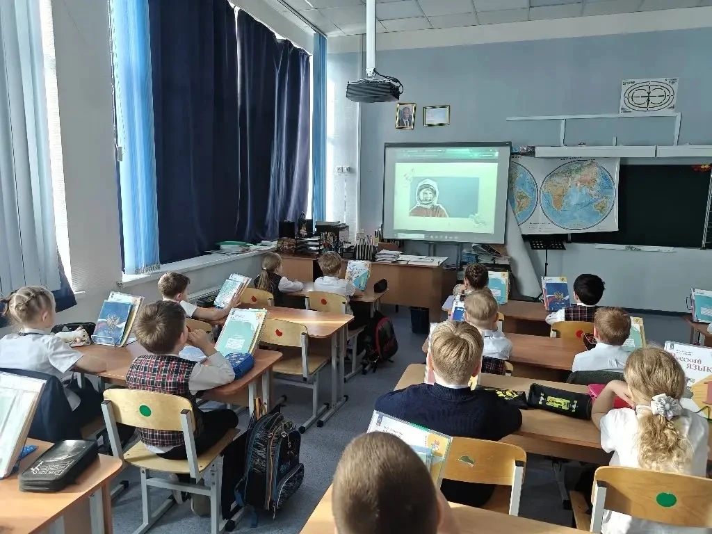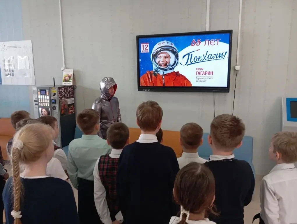 А после линейки ребята отправились на внеурочное занятие «Разговоры о важном». И тема сегодня — поистине вселенского масштаба: «65 лет триумфа. Ко Дню космонавтики». 🚀