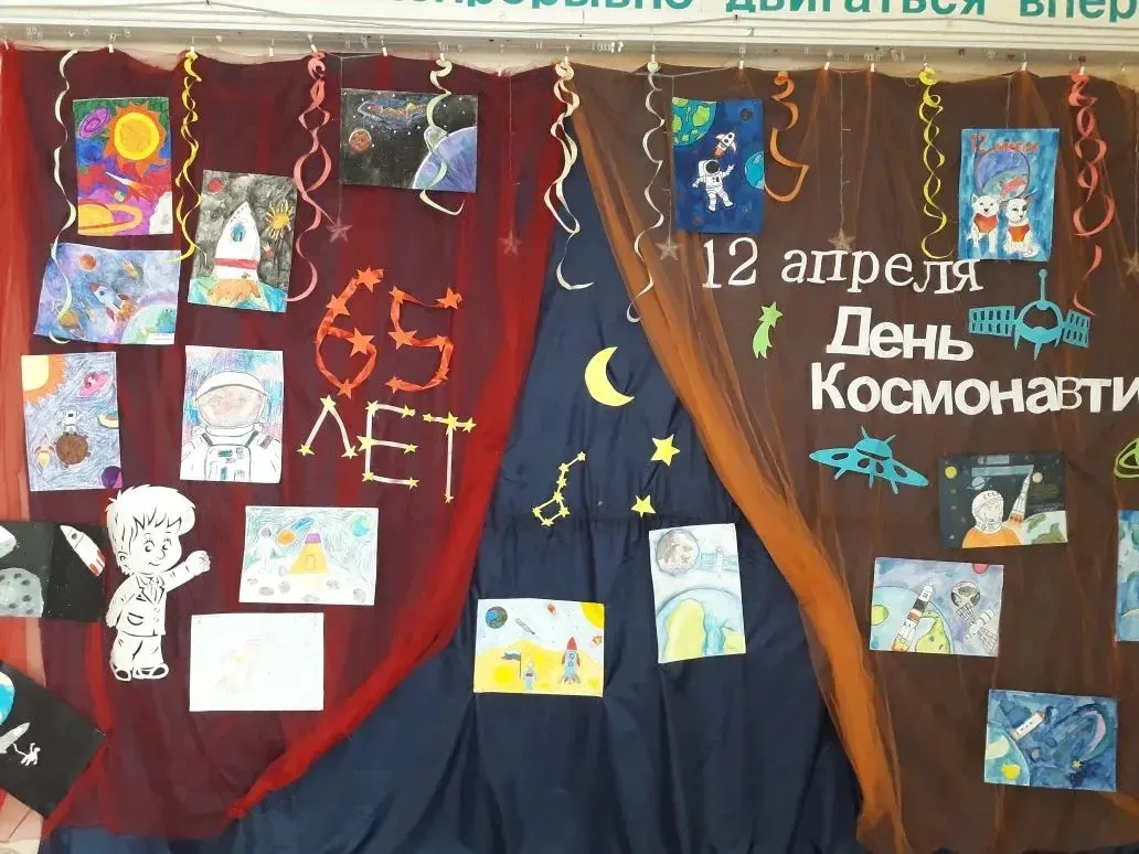 В рамках недели космонавтики в нашей школе прошла выставка рисунков, посвящённая 65-летию Дня космонавтики. В творческом порыве объединились учащиеся 5–6 классов, представив свои работы, наполненные мечтами о звёздах и Вселенной.