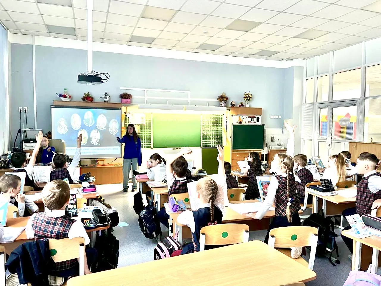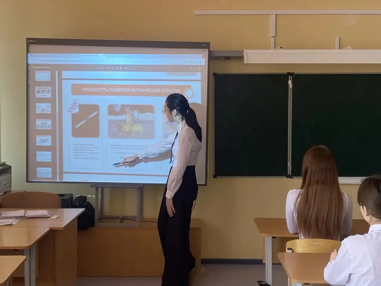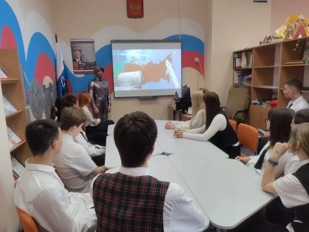 На занятии говорили о главном: Россия была и остается одной из ведущих космических держав. Вместе с педагогами школьники прошли по ключевым вехам отечественной космонавтики: