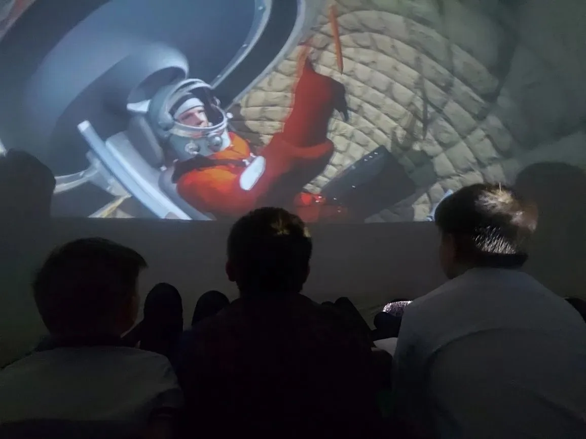 👨🚀 Ребята и взрослые с восторгом смотрели интересные фильмы про космос и космонавтов. Объёмный звук и изображение вокруг создавали невероятную атмосферу: казалось, будто ты сам летишь среди звёзд!