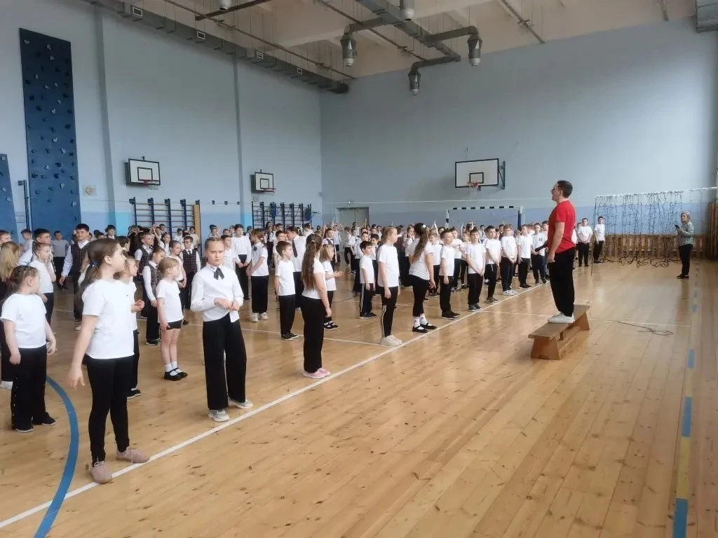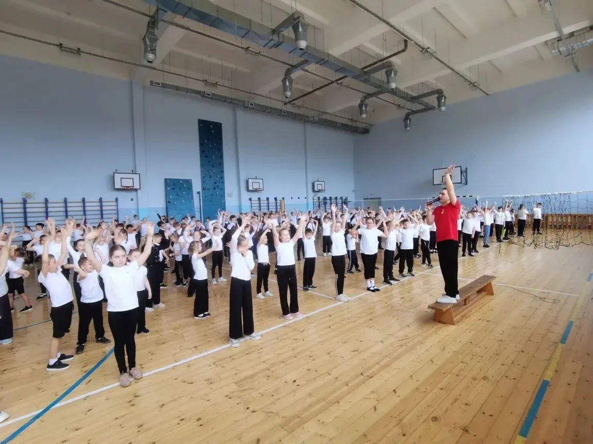 ✨ Для учащихся начальных классов была организована весёлая зарядка и познавательный час «Здоровое поколение — здоровое богатство», который провели сотрудники ДНТ «Дружба».