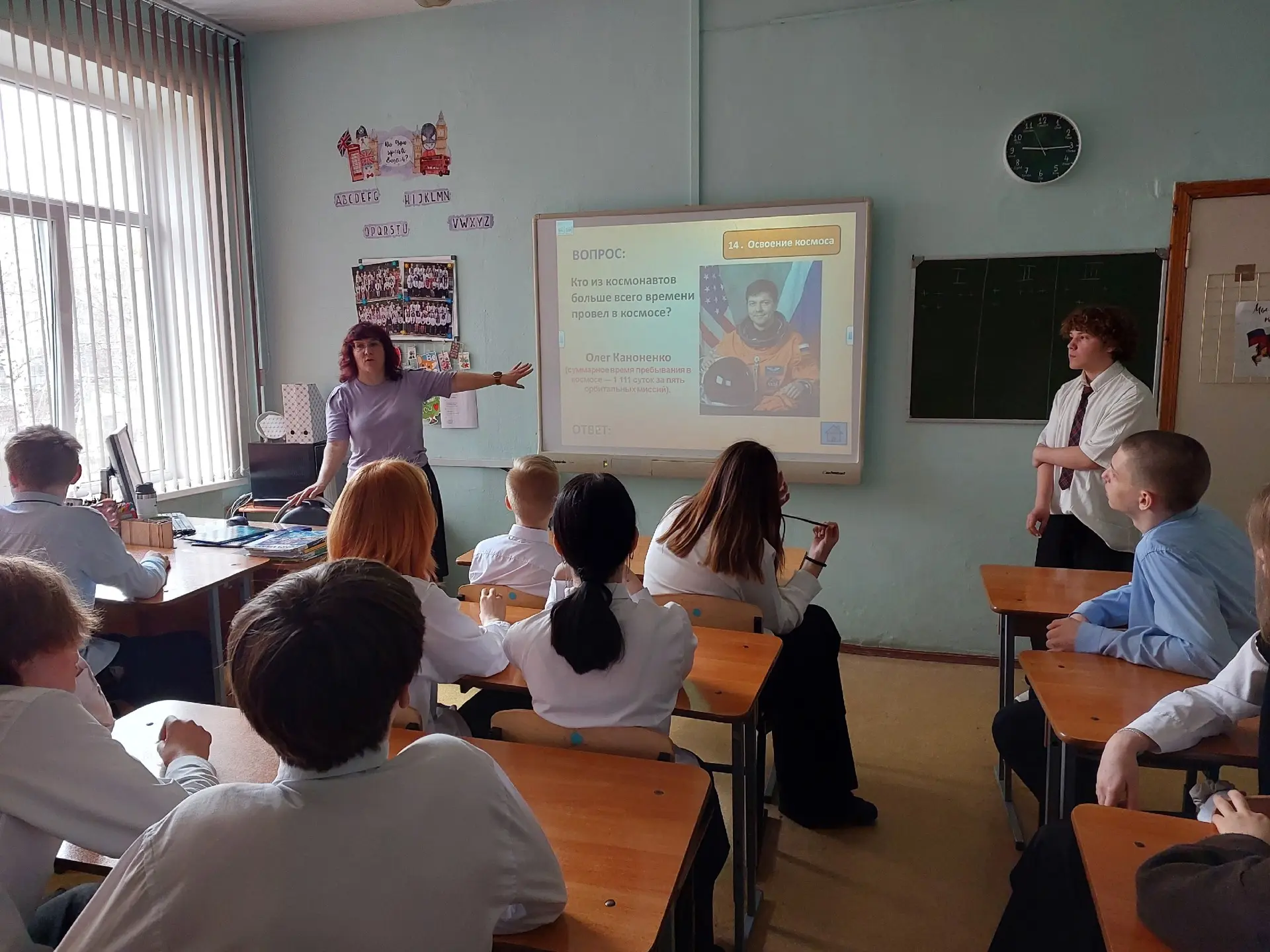 В рамках завершения Недели космонавтики сотрудники «Некрасовки» организовали для учеников 8А2 класса настоящий интеллектуальный поединок — баттл под названием «Космическая азбука».