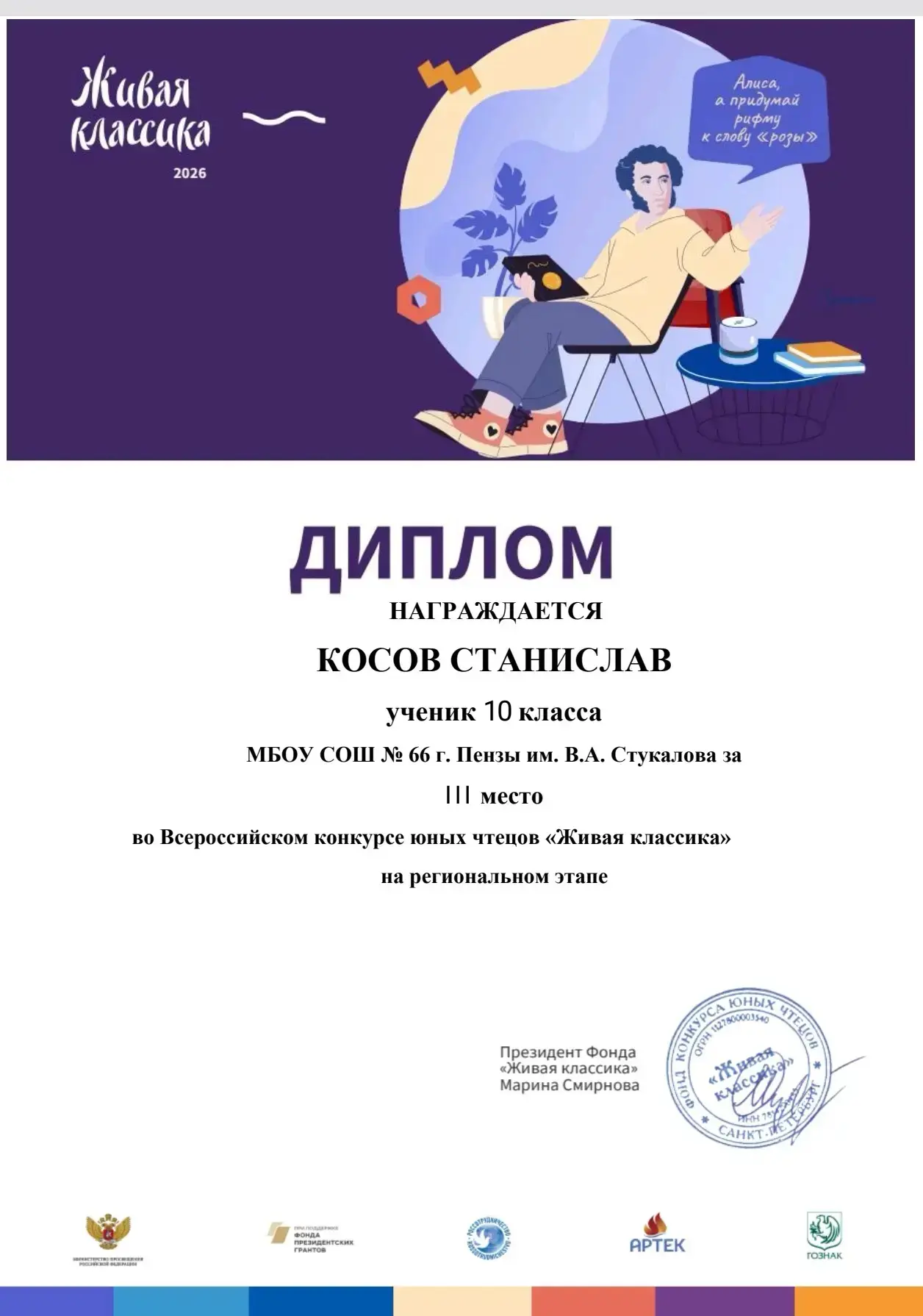Поздравляем Захара и его руководителя Копаеву Елену Вячеславовну с заслуженной наградой и желаем новых творческих успехов!
