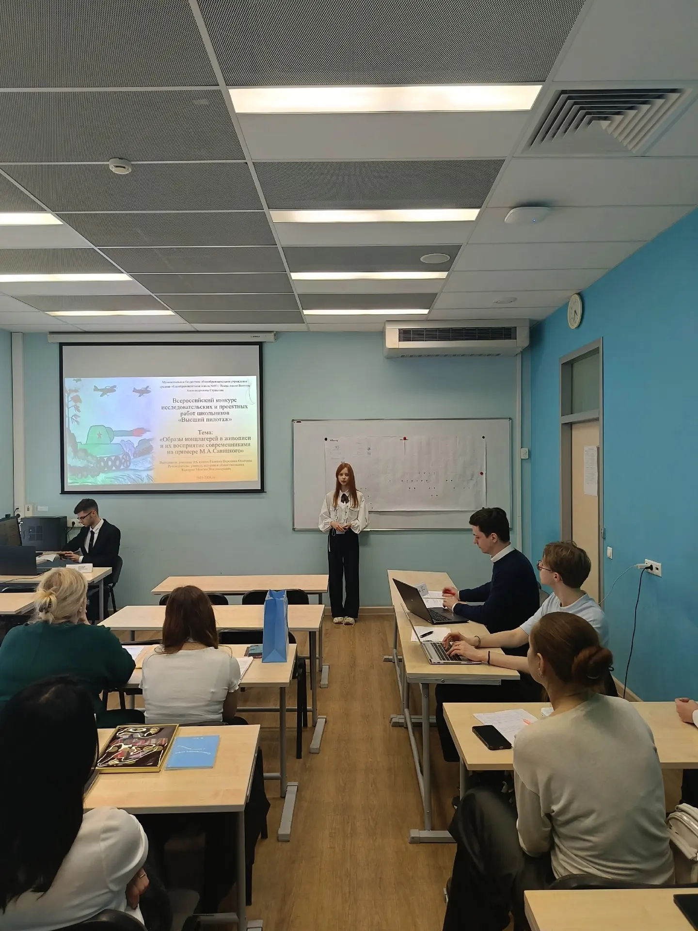 Ученица 10 "Б" класса успешно представила выступление с научно-практической работой на тему "Образы концлагерей в живописи и их восприятие современниками на примере М.А.Савицкого" в секции "История". Теперь она имеет преимущество при поступлении в Высшую школу экономики в виде дополнительных баллов ЕГЭ.