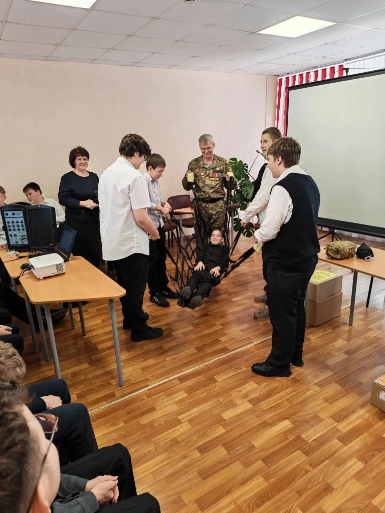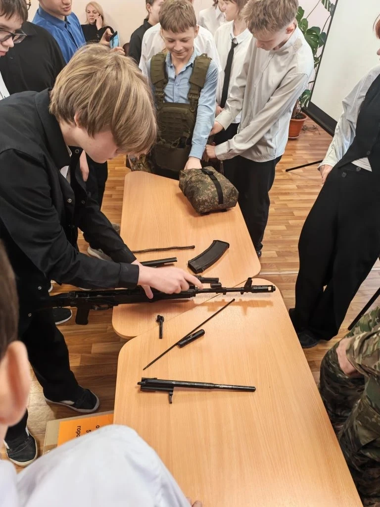 В ходе встречи, учащиеся узнали, какими предметами пользуются бойцы СВО, с помощью чего выносят бойца с поля боя, как оказывают первую помощь раненым, что входит в комплект аптечки. В конце встречи ребята имели возможность задать вопросы ветерану. Ученики собирали и разбирали автомат.