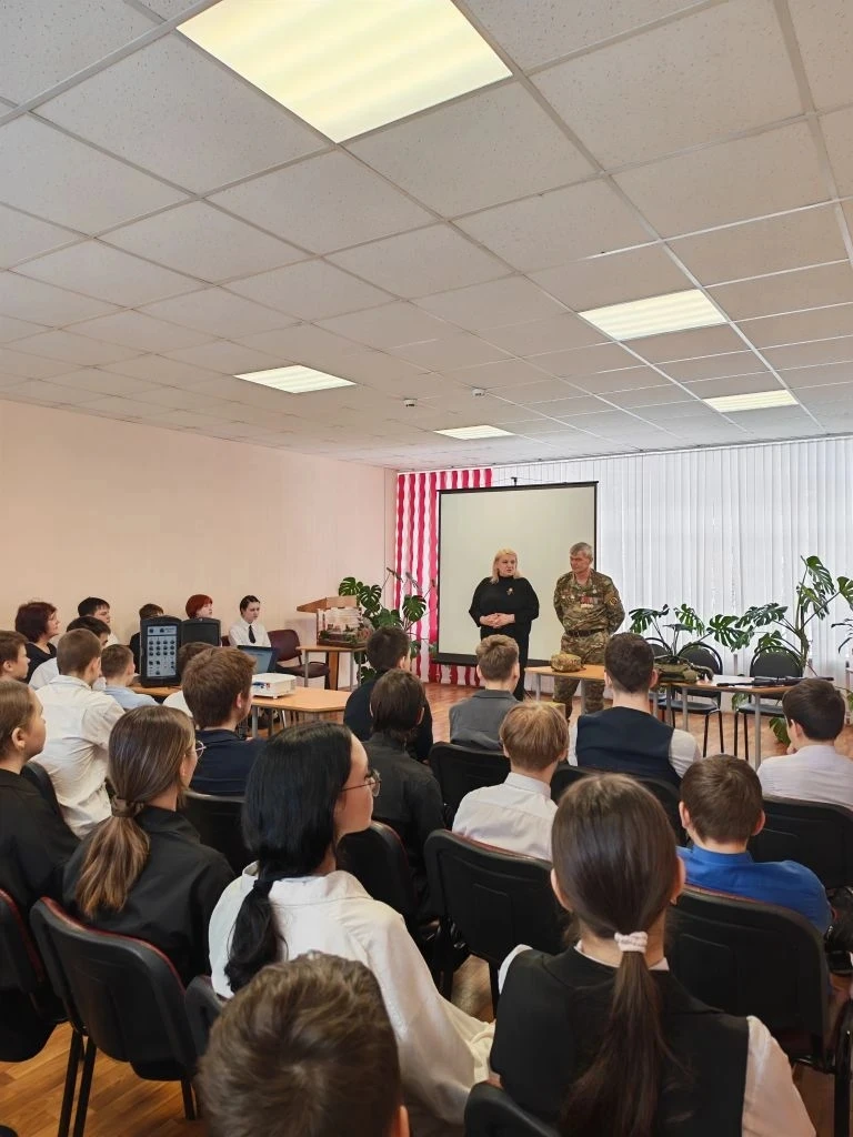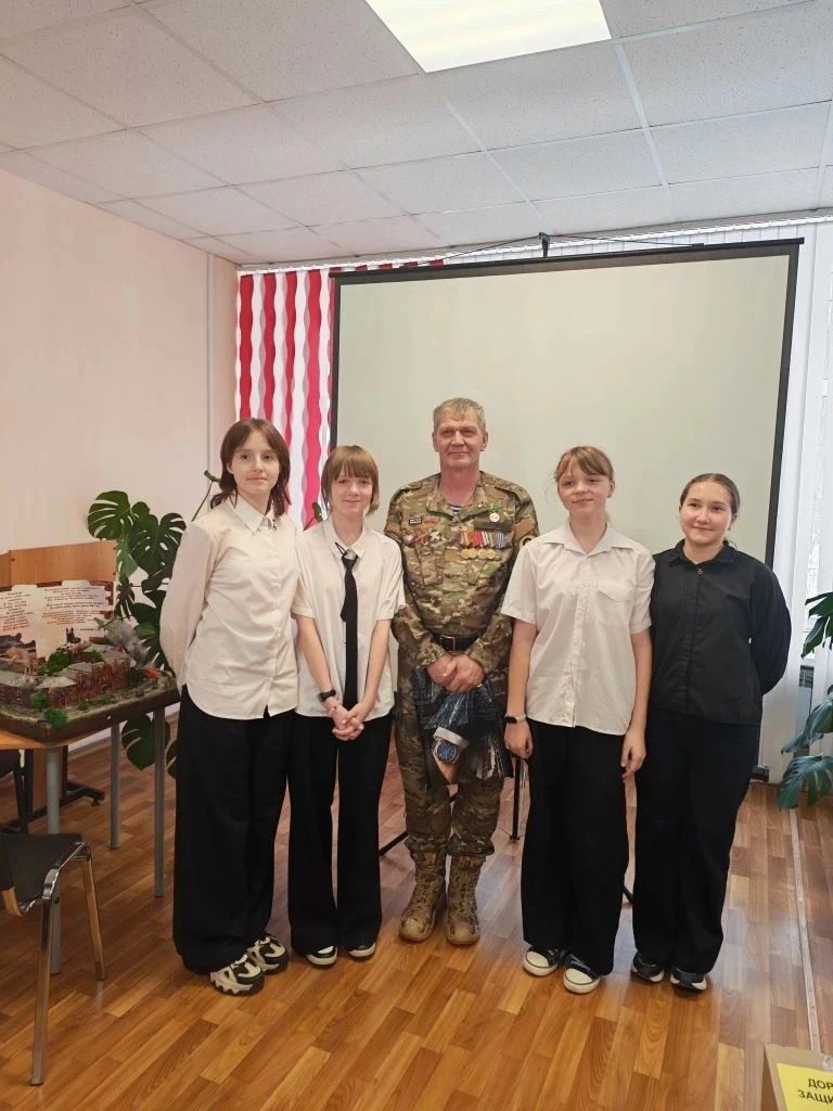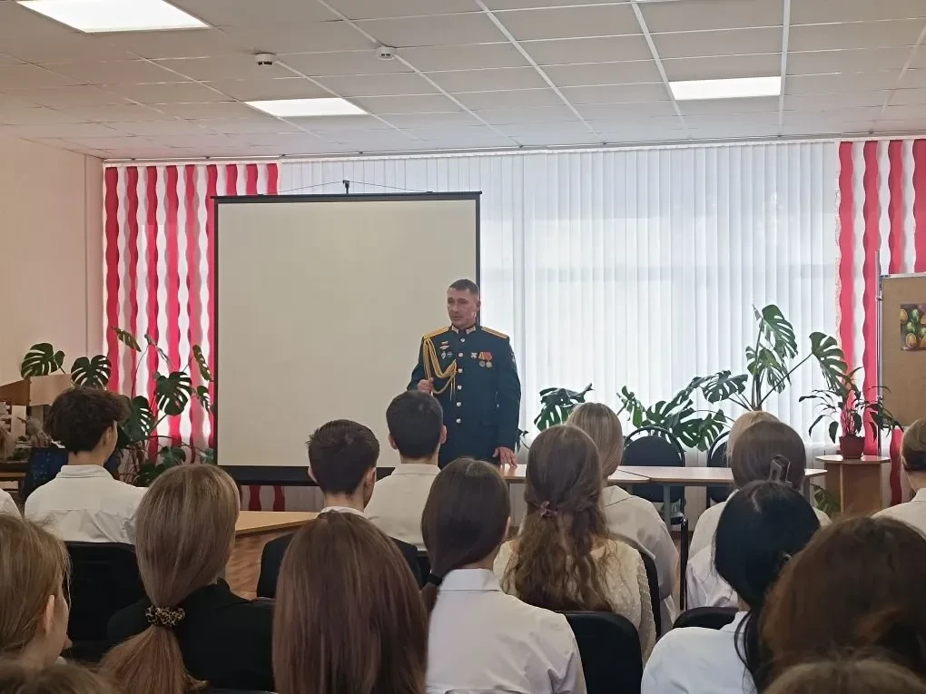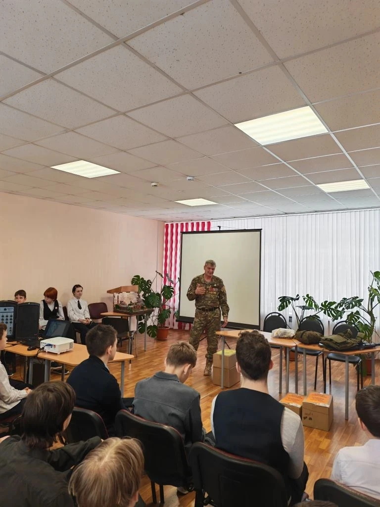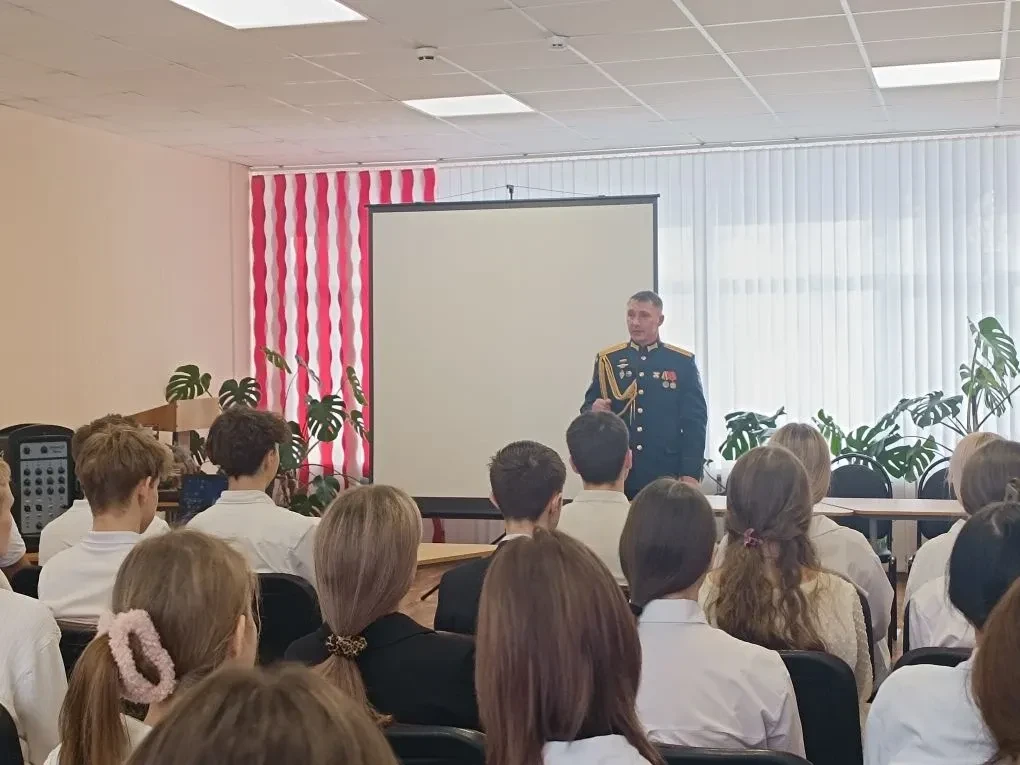 Дмитрий Викторович рассказал ребятам о своей службе, поделился личными историями и обратил особое внимание на вопросы, связанные с силой и мощью армии России. Школьники узнали о том, как Герои страны проявляют мужество и стойкость в сложные моменты, о том, как важно быть решительным человеком, развивать выносливость и самоотверженность, не сдаваясь перед трудностями.