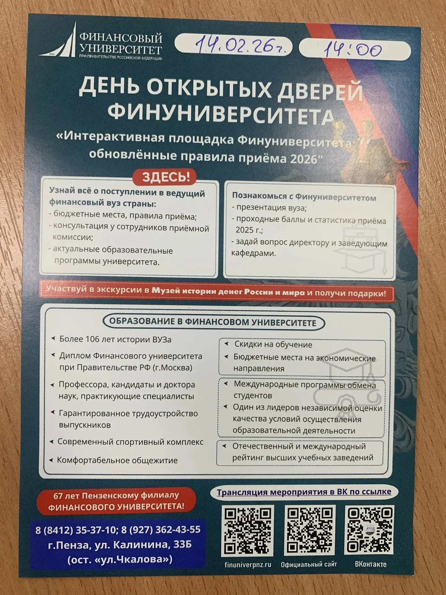 В преддверии Дня студента в школе прошла акция «Шаг в студенчество». Учащиеся пообщались с представителем Пензенского филиала Финансового университета при Правительстве РФ. Ребята узнали, какие программы обучения предлагает университет, сколько будет выделено бюджетных мест, какие баллы и по каким предметам являются проходными, какие возможности открываются перед выпускниками. Также преподаватель рассказал о студенческой жизни и пригласил всех желающих на День открытых дверей 14 февраля.