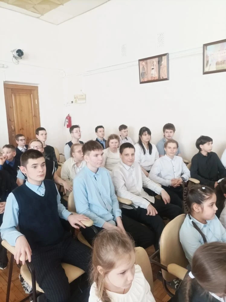 Пензенская картинная галерея им. Савицкого провела выездное мероприятие в нашей школе. Сотрудник галереи Людмила Пантелеева познакомила учеников с подвигом Андрея Кижеватова, уроженца Пензенской области и героя обороны Брестской крепости и показала фильм «Солдат вечности».