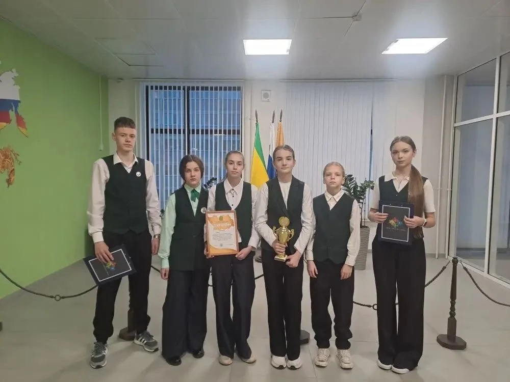 Команда учеников 8 "В" класса одержала победу в номинации «Лучшая командная работа» на городском экологическом марафоне «Будь ЭКОлогичным».