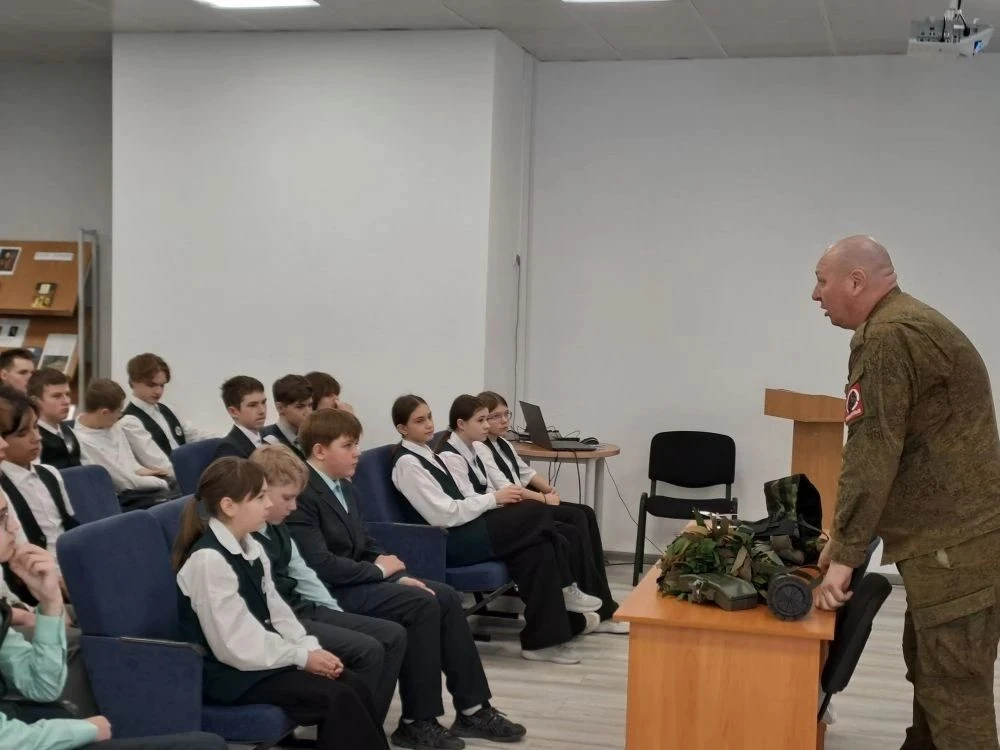 🇷🇺В нашей школе прошёл важный и значимый Урок Мужества Почётным гостем встречи стал Смоляков Виктор Иванович, координатор фонда Фонд «Защитники Отечества», участник СВО. Он поделился с ребятами личным опытом службы, рассказал о боевом братстве, взаимовыручке и о том, как важно сохранять стойкость, силу духа и верность своей стране.